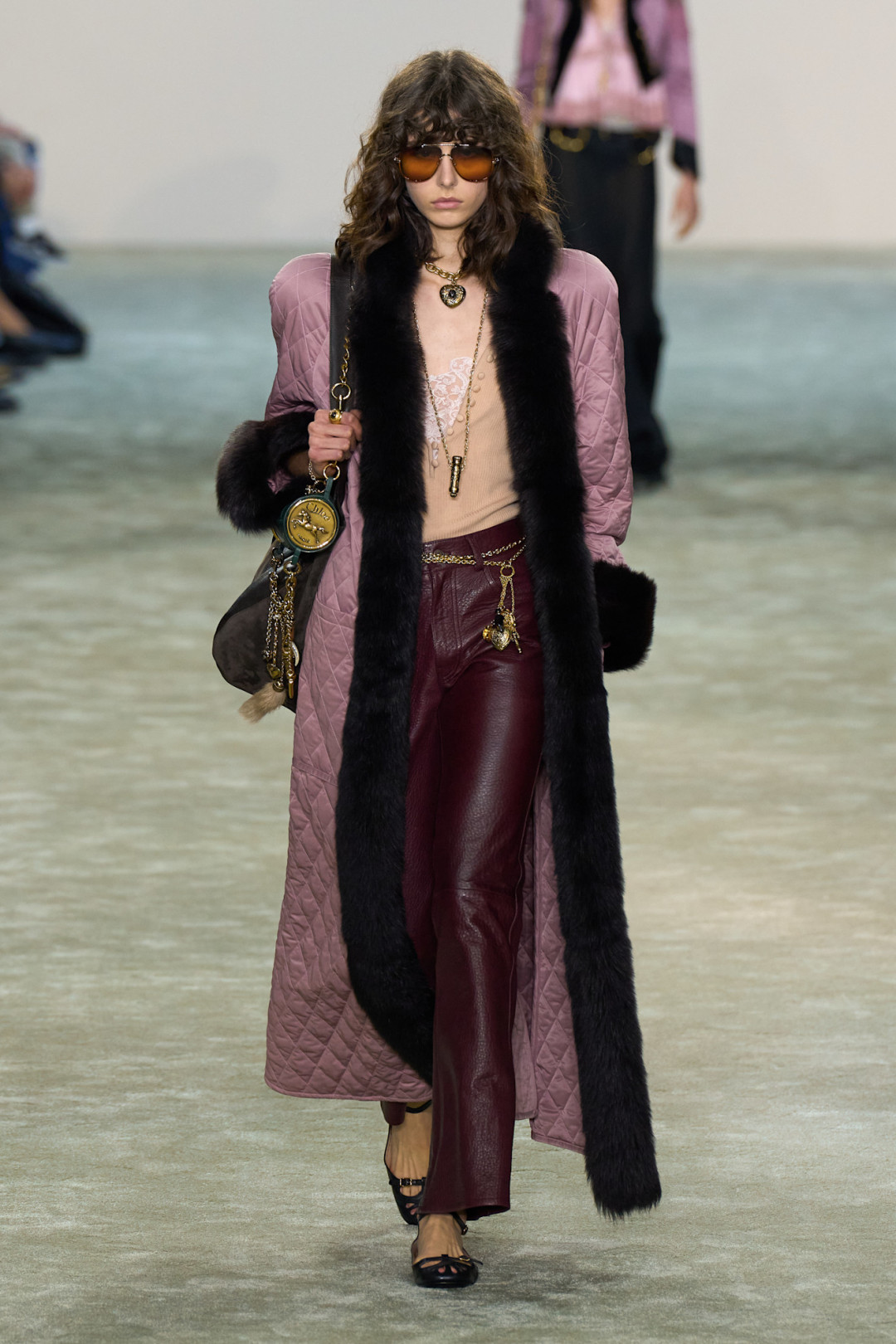 Дебют Райдера доказал, что преппи-эстетика возвращается в модный оборот. Свитера ярких оттенков накидываются поверх рубашек и поло-футболок, золотые цепи и браслеты придают образу блеск и роскошь, а атласные шарфы — интеллигентность.