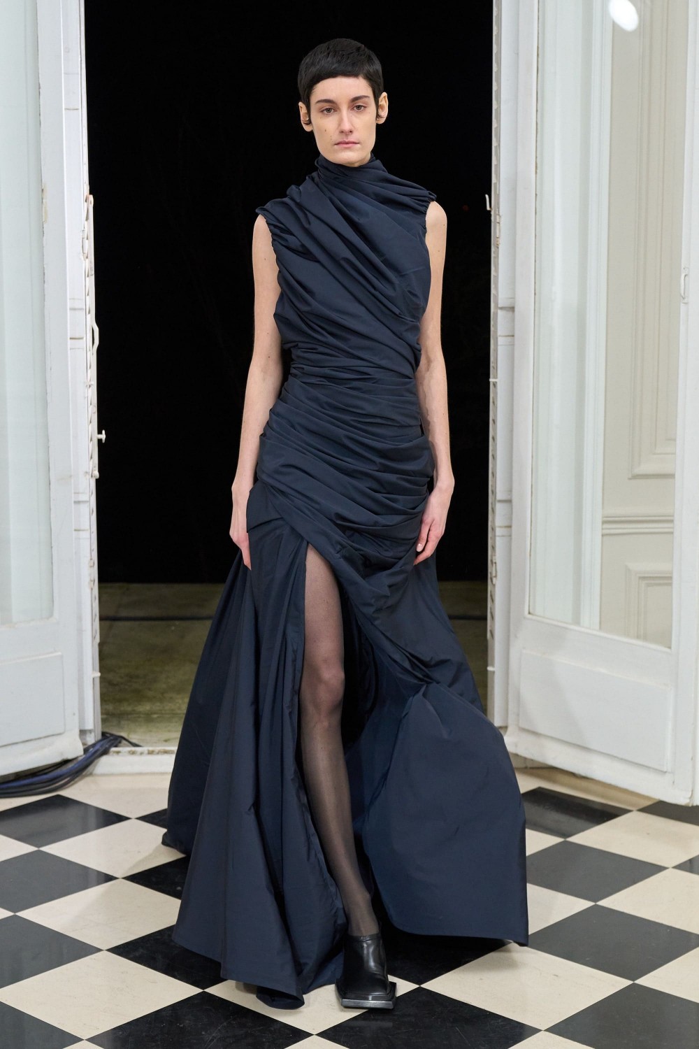 Вневременная и смелая коллекция была воодушевлена Гималаями — мастерская драпировка имитирует холмистые склоны горных вершин. Бренд стремится доказать, что будущее женской моды инновационное, этичное и женственное.