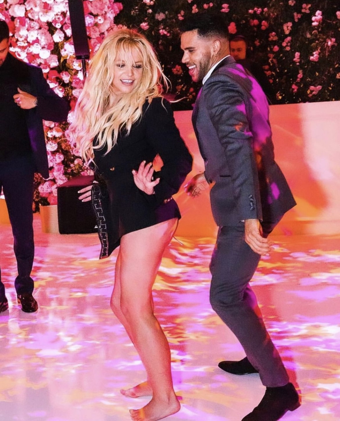 9 июня Бритни и ее жених Сэм Асгари отпраздновали начало новой семейной жизни. Свадьба удалась на славу, а афтепати еще лучше! После дневной церемонии певица решила заменить пышное платье, сковывающее движения, на черный блейзер Versace.