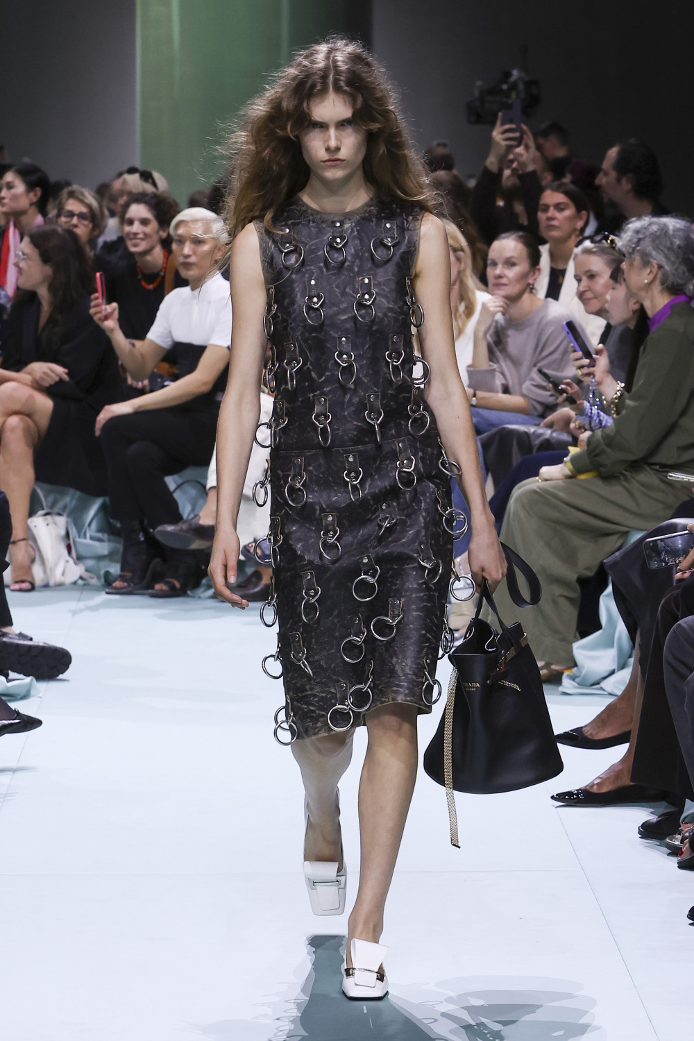Новая коллекция Prada — это встреча прошлого и грядущего, искусно объединенная в одно модное полотно. Культовые изделия из архивов марки переплелись с современными и футуристическими элементами. Массивные броги, сандалии с кожаными ремешками и Mary Janes на каблуках привносили ретро-акценты в образы, в то время как «инопланетные» очки и прозрачные козырьки отсылали к будущему.