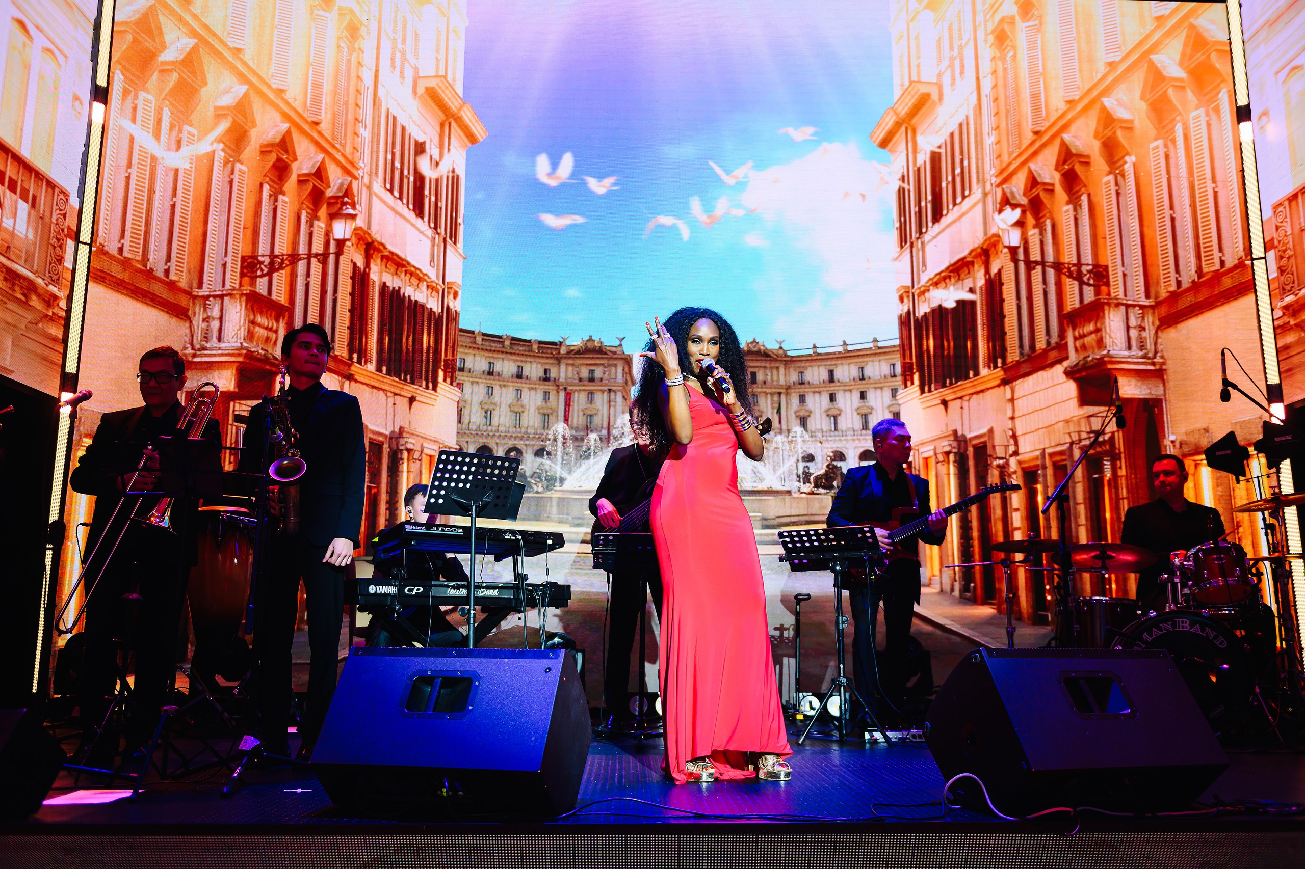 Кроме того, из Лондона прилетела друг бренда Джина Уэст. В сопровождении казахстанской группы «Талисман» и пианиста Виктора Хоменкова певица дала полноценный сольный концерт, не раз вызвав бурные овации публики.