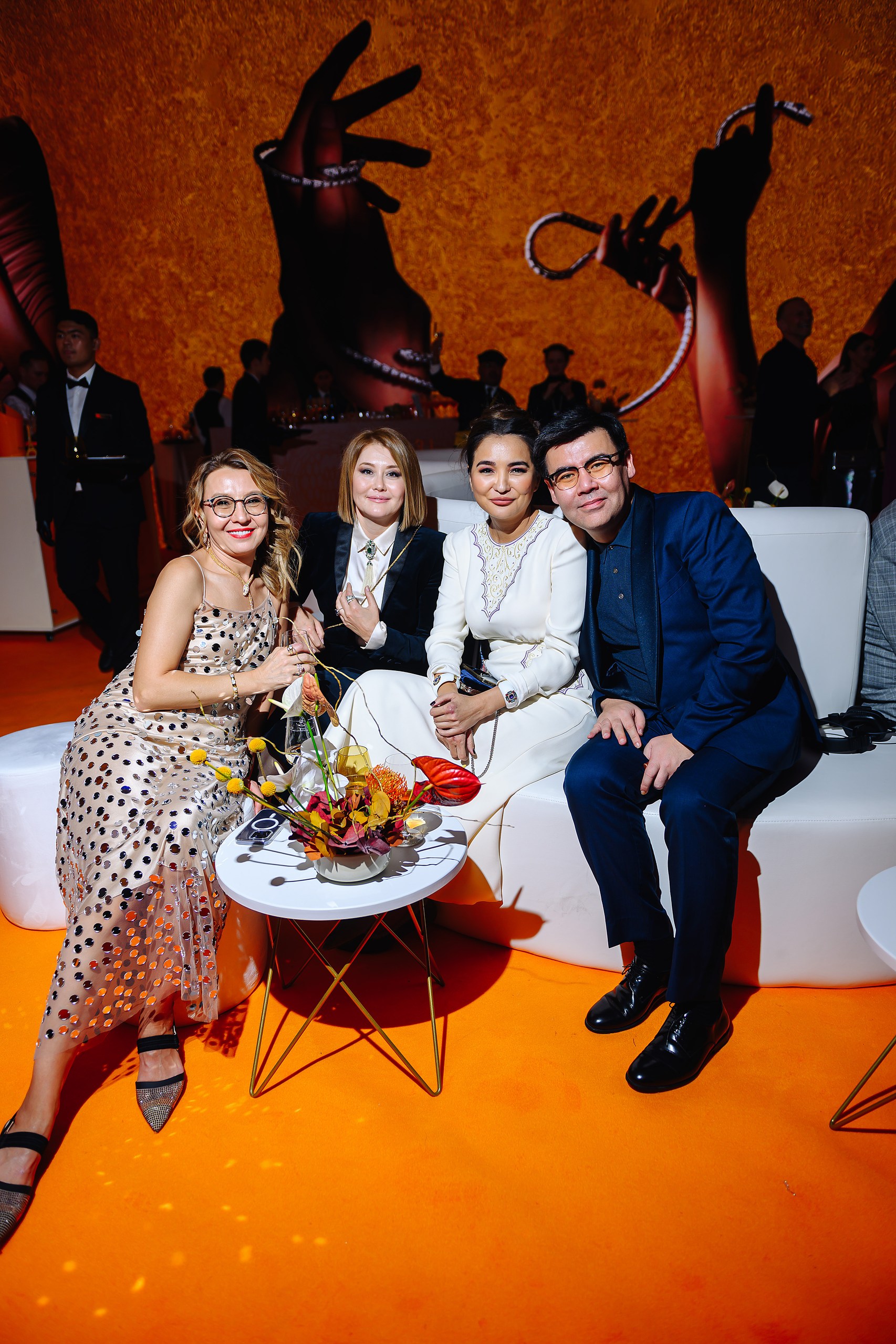 Прибывшие в Алматы официальные представители Bulgari, их казахстанские партнеры из компании Sansi Group, основатели фонда «Саби» приветствовали и благодарили гостей со сцены. Среди собравшихся были генеральный директор Bulgari для стран СНГ и Восточной Европы Олег Кайдалов, партнер Bulgari в Казахстане Гаухар Абыкаева, основатели фонда «Саби» Кенес Ракишев и Асель Тасмагамбетова, музыкальный продюсер и композитор Ренат Гайсин, дизайнер Андрей Артемов, стилист Сердар Комбаров, телеведущая Светлана Коковинец, бизнесмен Александр Белович и другие.