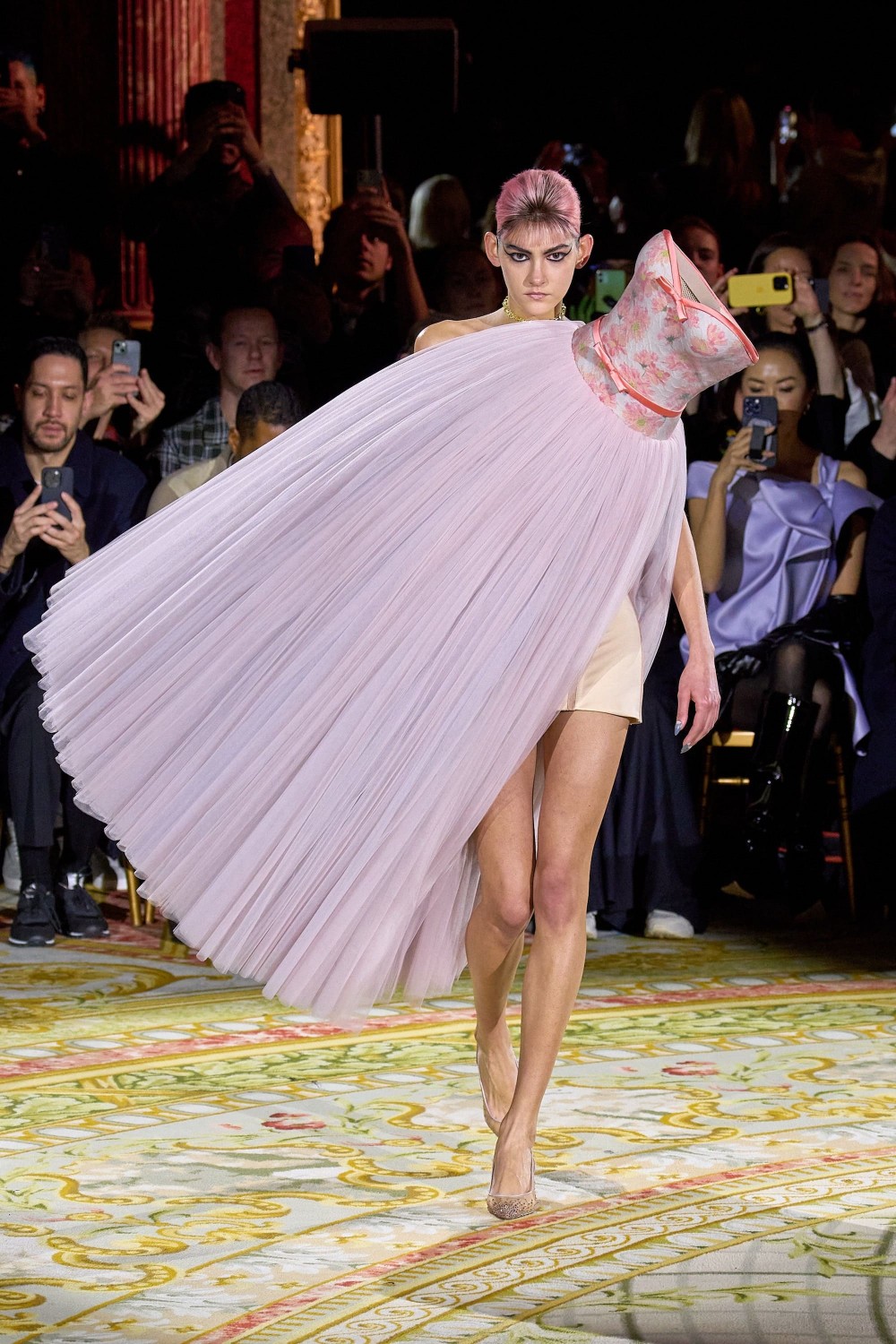 Неординарные силуэты, требующие длительной творческой работы, материалы, вышивка и в целом внимание к мельчайшим деталям демонстрируют нам, что мода и искусство — неразделимые понятия. К примеру, дуэт Viktor & Rolf, широко известный своим провокационным подходом к кутюру, в очередной раз внес долю юмора и эксцентричности в Неделю моды. Далеко не все платья в коллекции были надеты традиционным способом. В этом сезоне бренд раздвигает границы сюрреализма и представляет наряд от-кутюр вверх ногами, сбоку и даже под наклоном — все это неординарно бросает вызов законам притяжения.