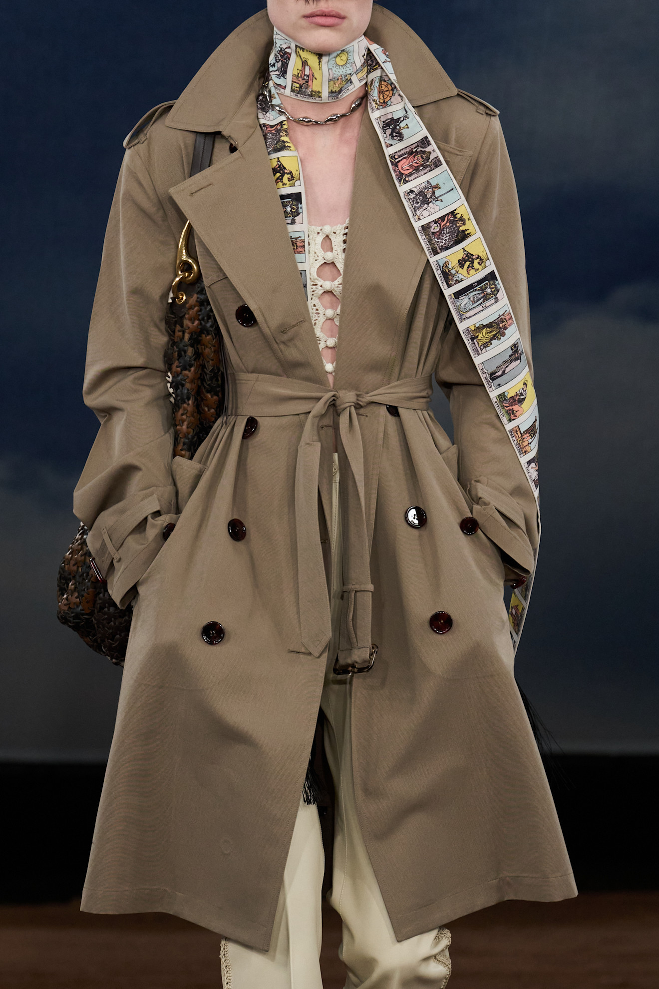 Главный символ Burberry — тренч — Ли превратил в объект игры. Он стал короче, засиял восковым блеском хлопка, появился в дениме и в А-образном силуэте, покрытом разноцветной клеткой, словно со страниц альбома Мэри Куант.