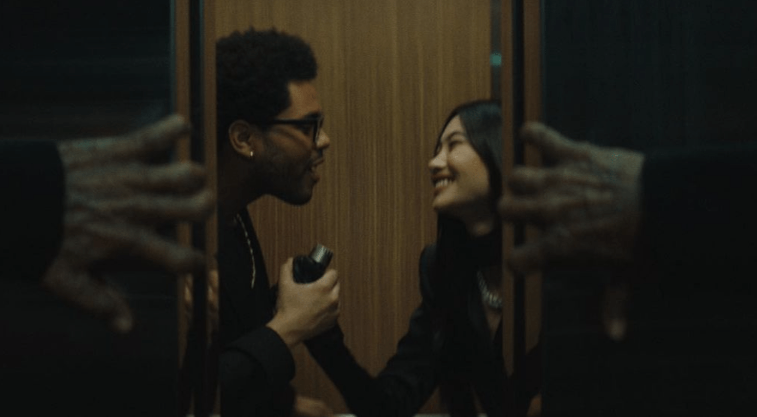На опубликованном кадре герои нежно смотрят друг другу в глаза. Также можно заметить руки, пытающиеся открыть двери лифта, в котором они стоят.