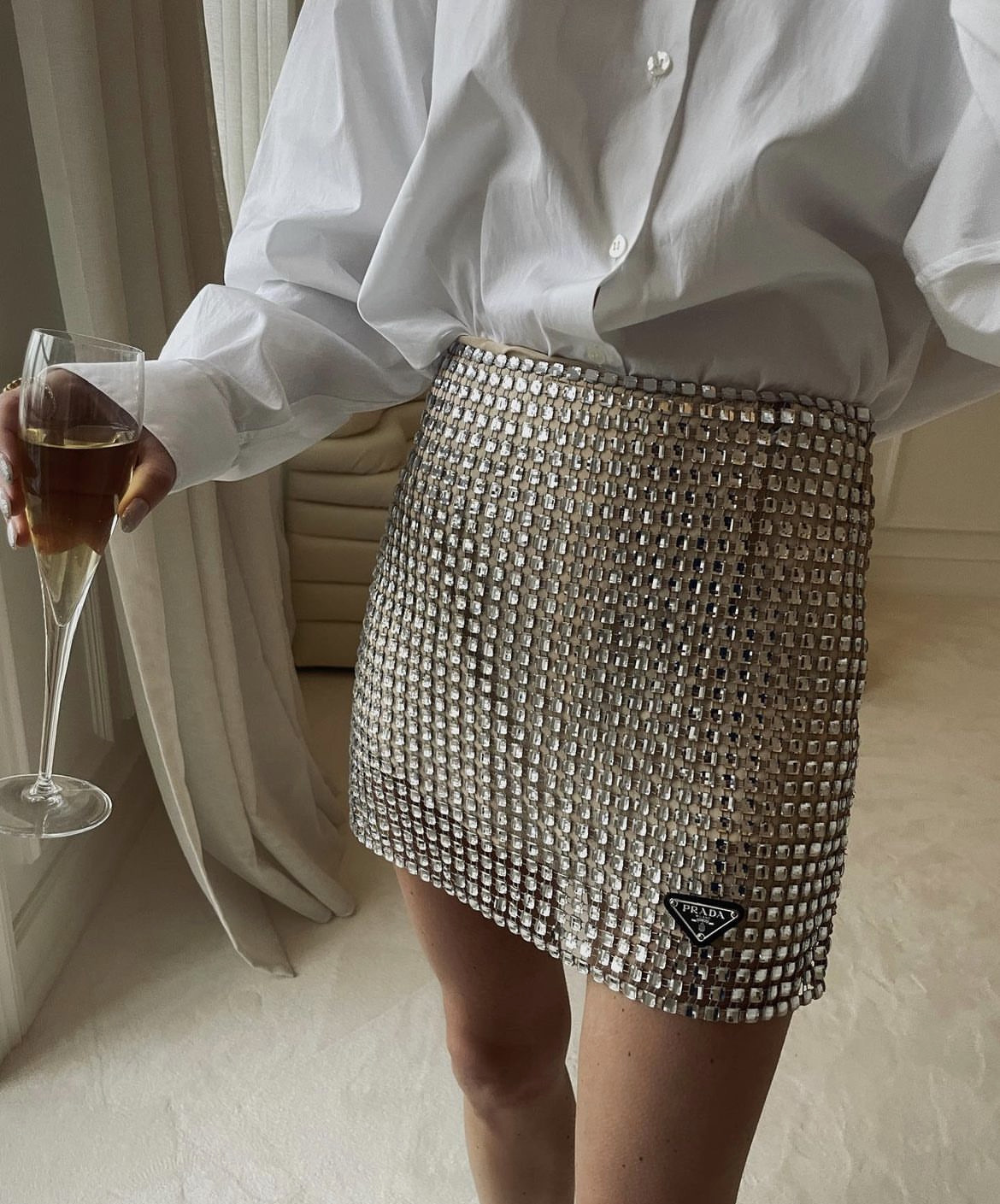 Согласитесь, ничто не создает новогоднее настроение так, как блестки. Стразы, пайетки или стеклярус — выбор за вами. С такими элементами блистать вы будете в прямом и переносном смысле.