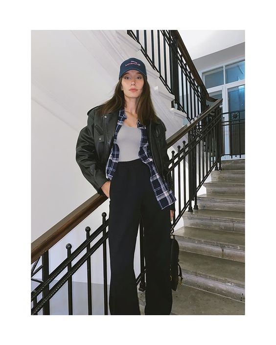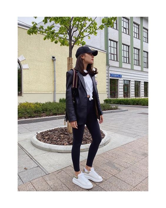 Многослойность: косухи, рубашки в клетку, топ и спортивные брюки. Минимализм: кожаный пиджак, футболка, завязанная узлом и легинсы. Катя без особых усилий создает образы на заметку.