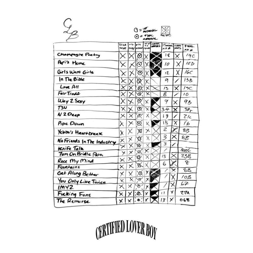 Дрейк выпустил шестой студийный альбом под названием «Certified Lover Boy». В нем представлены сольные треки и совместные композиции с Young Thug, Lil Baby, 21 Savage, Джей-Зи, Трэвисом Скоттом, Future и Kid Cudi.