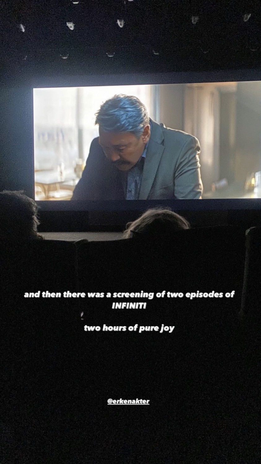 Мероприятие проходит в знаменитом Дворце фестивалей и конгрессов, где на большом экране показали пару эпизодов Infiniti. Данияр отмечает, что это были "Два часа чистого удовольствия", а публика очень тепло встретила проект. Более того, в официальном аккаунте @cannesseries в Instagram даже добавили, что после просмотра двух серий овации еще долго не прекращались.