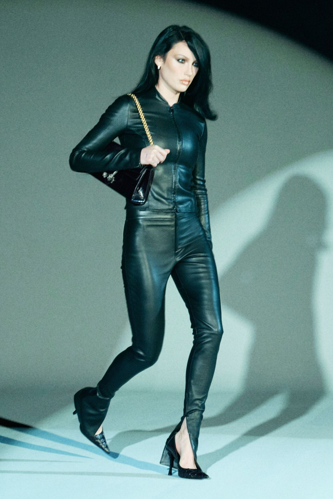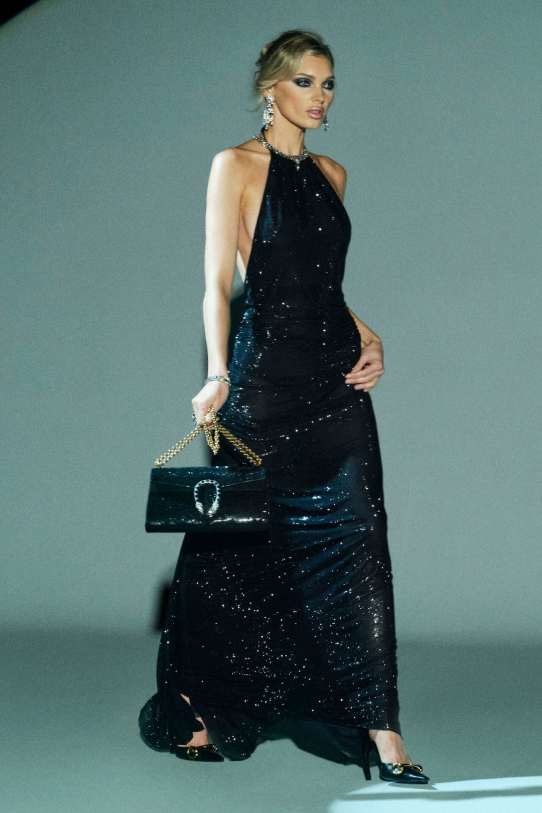 И, конечно, аксессуары. Следуя принципу Тома Форда, который верил, что финальный акцент способен собрать весь образ в единое целое, Демна представляет Lunetta Phone+ — гибрид украшения и аксессуара, который хочется рассматривать как ювелирный объект, Jackie 1961 сразу в двух размерах, а также Dionysus — в новой, более угловатой форме.