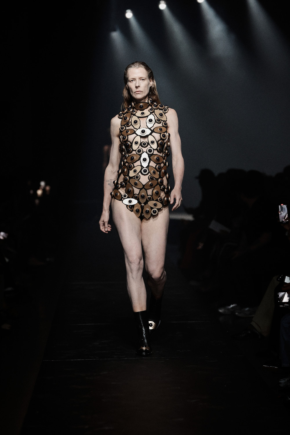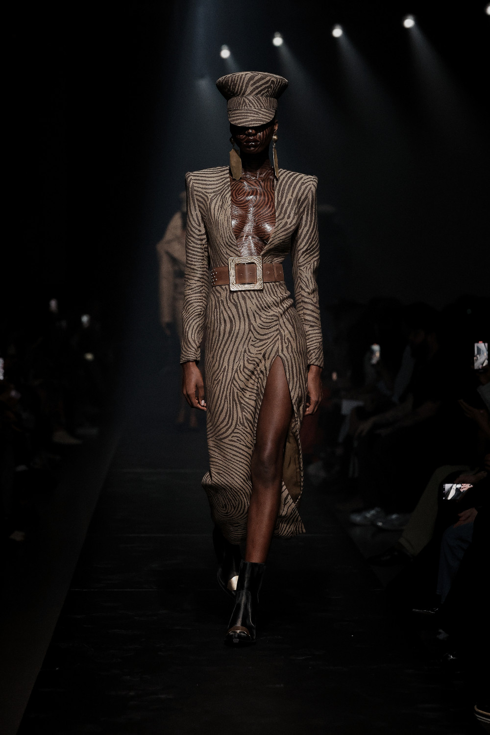 На подиуме искусно сочетались строгие формы с плавными линиями, подчеркивая силу и уникальность личного стиля. Особое внимание было уделено 3D-текстурам и объемным элементам, создающим динамичный эффект. Однако фаворитом редакции стали изображения отпечатков пальцев и рук, расположившиеся н аодежде и аксессуарах, которые стали метафорой персонального творчества.