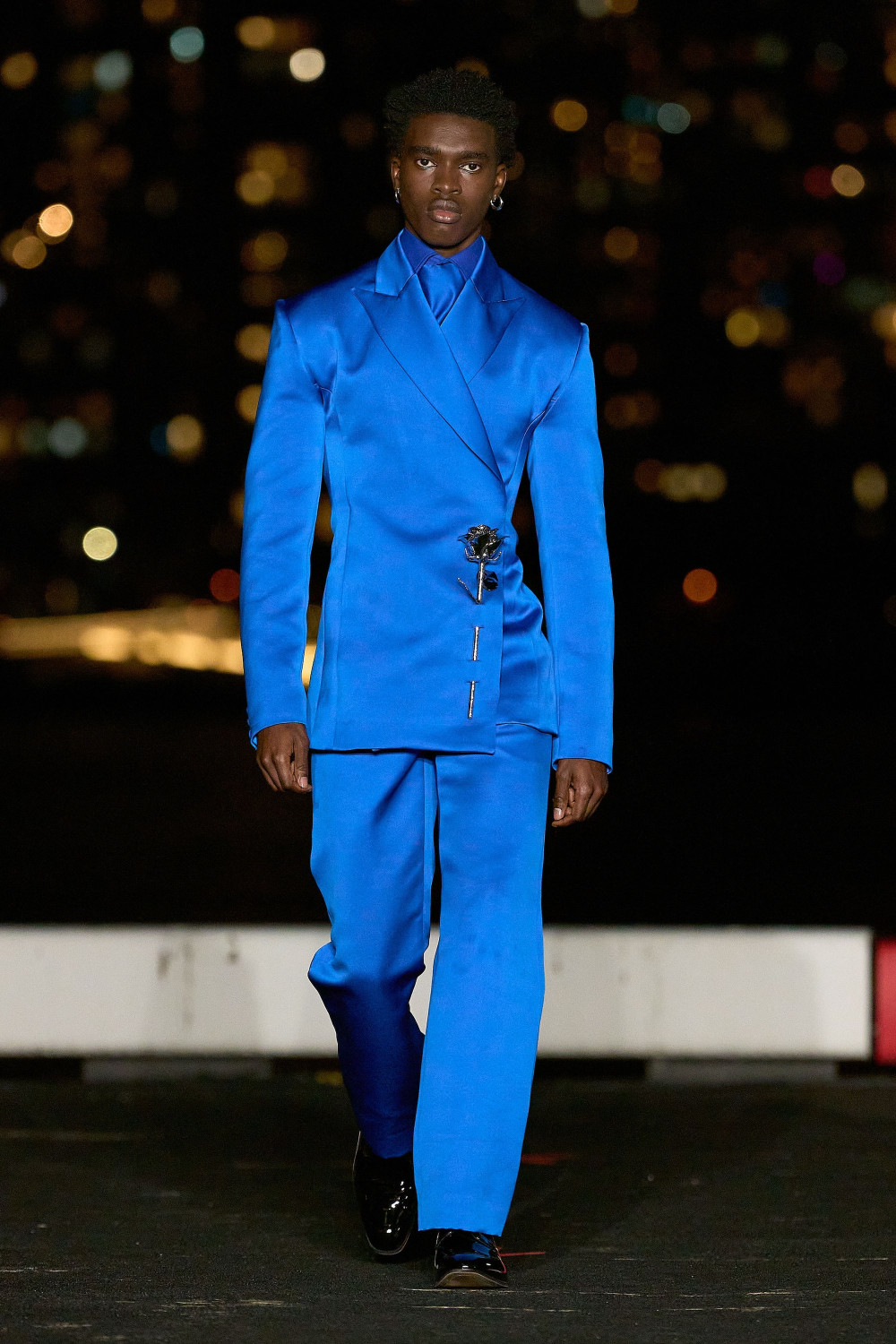 Стоит отметить, дизайнер, известный своими экстравагантными нарядами, в этом сезоне выбрал более сдержанную эстетику с преобладанием черного атласа и кожи, декорированных редкими вкраплениями блеска. Коуэн также представил атласные костюмы и блейзеры, украшенные розами из стерлингового серебра, тем самым демонстрируя сочетание стилей 1920-х и 1940-х годов с современными элементами.