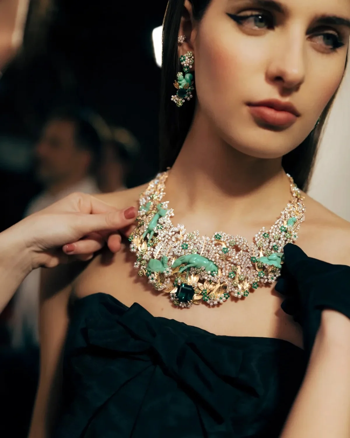 Стоит отметить, что в коллекцию вошли не только колье и серьги, но и диадемы с сотуарами. Каждое из украшений представляет собой завораживающий пейзаж, пронизанный поэтической флорой и фауной. Золотой кролик прыгает в куст, усыпанный сверкающими бриллиантами, совы порхают среди ветвей, украшенных яркими рубинами, а величественные лебеди плавают в центре пруда, окаймленного сверкающими синими сапфирами.