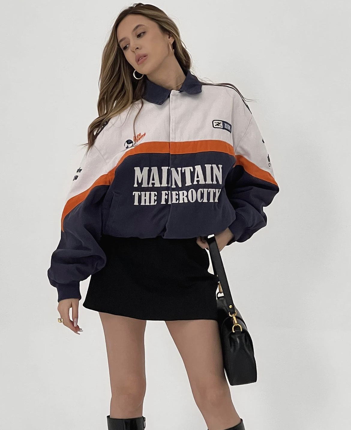 Аутфит Райханы Мухлис тому подтверждение! Мини-юбка, высокие сапоги на каблуке и сумка необычной модели — согласитесь, выглядит эффектно. Сдаем пароли и явки — рассказываем, где искать стильный бомбер на любой бюджет.