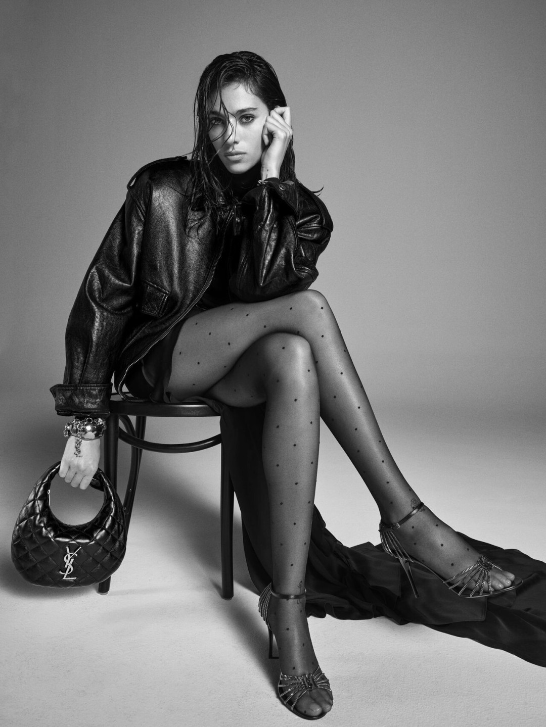 Отдельного внимания заслуживает то, как съемка «останавливает» время. Чистые интерьеры превращаются в рамку, а модели — в изящные скульптуры. Эта легкая театральность идеально передает эстетику Saint Laurent, где строгие формы соседствуют с непринужденностью.