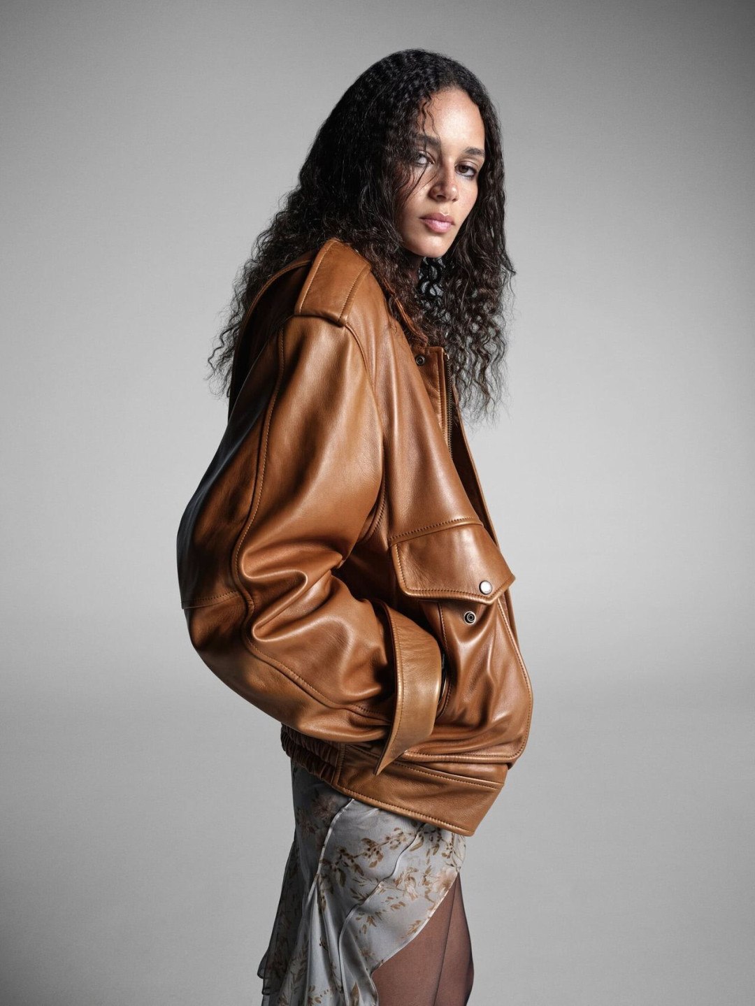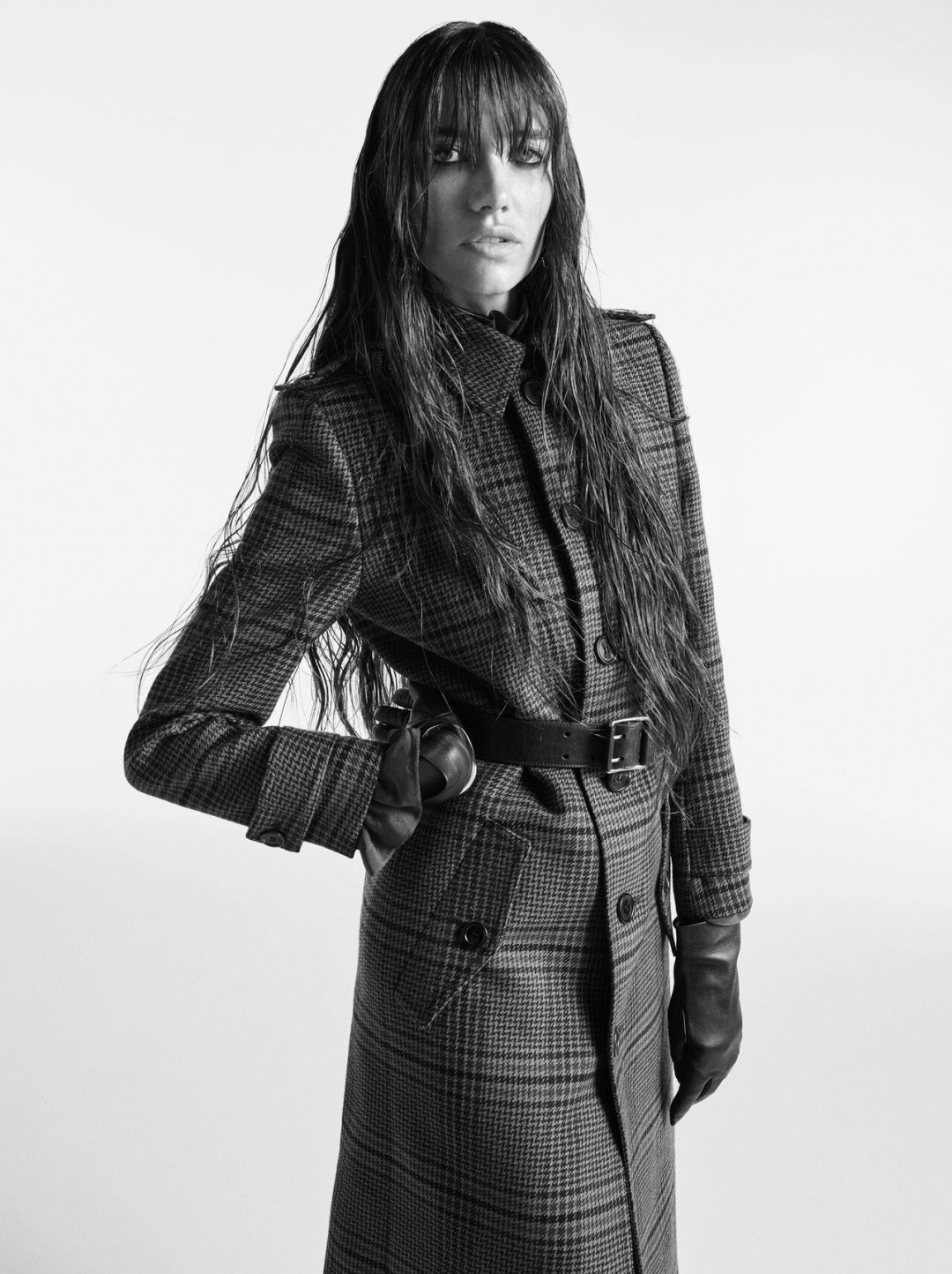 Ваккарелло продолжает транслировать коды Дома. Это и скульптурный крой, и силуэты, построенные на четких линиях, и, конечно, черный цвет как главная опора коллекции. Скарсгард позирует в ботфортах выше бедра, которые дебютировали на январском показе в Париже и уже успели стать любимцами красных дорожек. А Хейли Бибер и Розе демонстрируют объемные кожаные бомберы, блузы с бантами у горла и сумку Icarino.