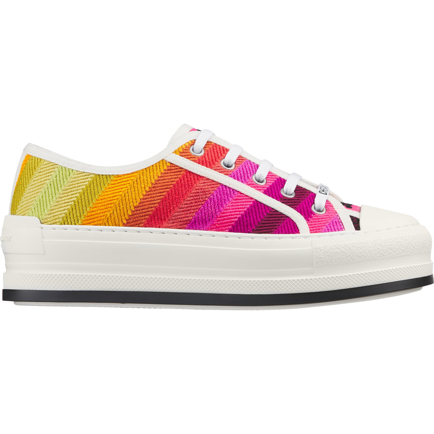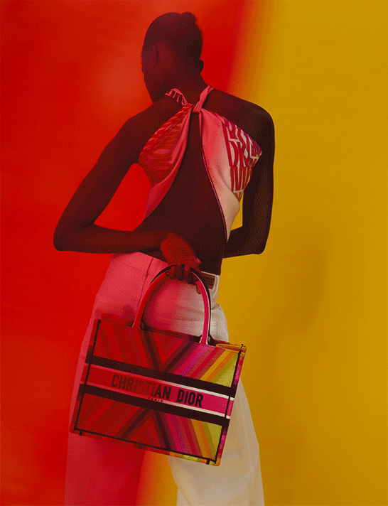 Коллекция выполнена в градиентной яркой палитре, которая олицетворяет бунтарскую энергию эпохи. В нее вошли: элегантные рубашки, футболки, платья и шелковые платки, а также оправы для очков и аксессуары для волос. На всех этих изделиях, выполненных в насыщенных оттенках красного, зеленого, розового, оранжевого и желтого, нанесен логотип Miss Dior, который становится настоящим манифестом стиля и свободы. Он также украшает туфли Miss Dior Street и различные изделия из кожи.