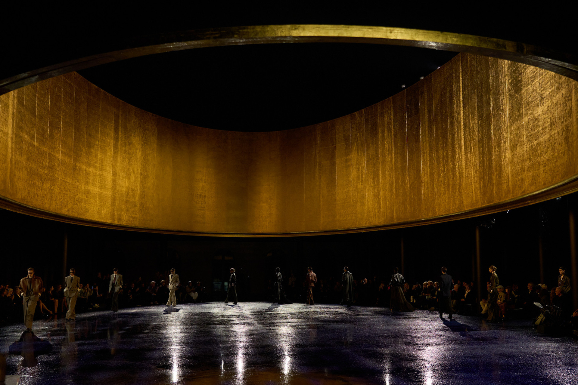 Под сиянием золотого купола Энтони Ваккарелло представил новую коллекцию Saint Laurent. Вдохновение для этого сезона он почерпнул непосредственно из образа основателя дома. После прочтения интервью начала 2000-х, в котором Ив Сен-Лоран утверждал, что «его женщина» — это отражение его лично, дизайнер решил воплотить эту суть в одежде.