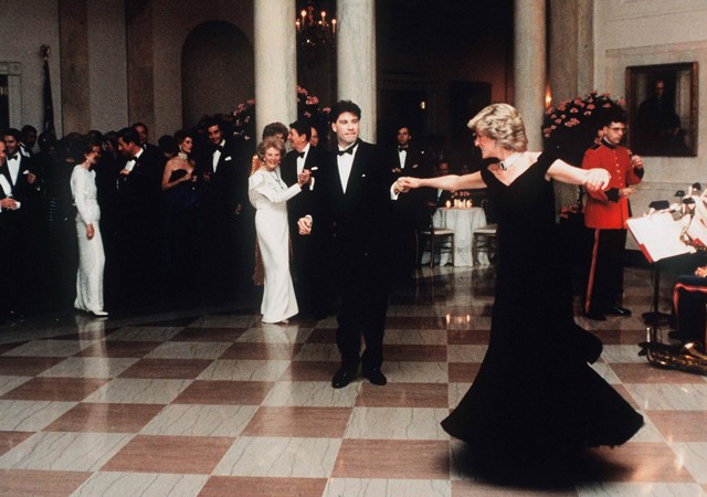 Танец случился в 1985 году в Белом доме, где по случаю визита британских монархов на тот момент президент США Рональд Рейган и его супруга Нэнси устроили официальный прием. Среди гостей были Клинт Иствуд, Нил Даймонд и Джон Траволта, которых, пригласили по просьбе самой принцессы Уэльской.