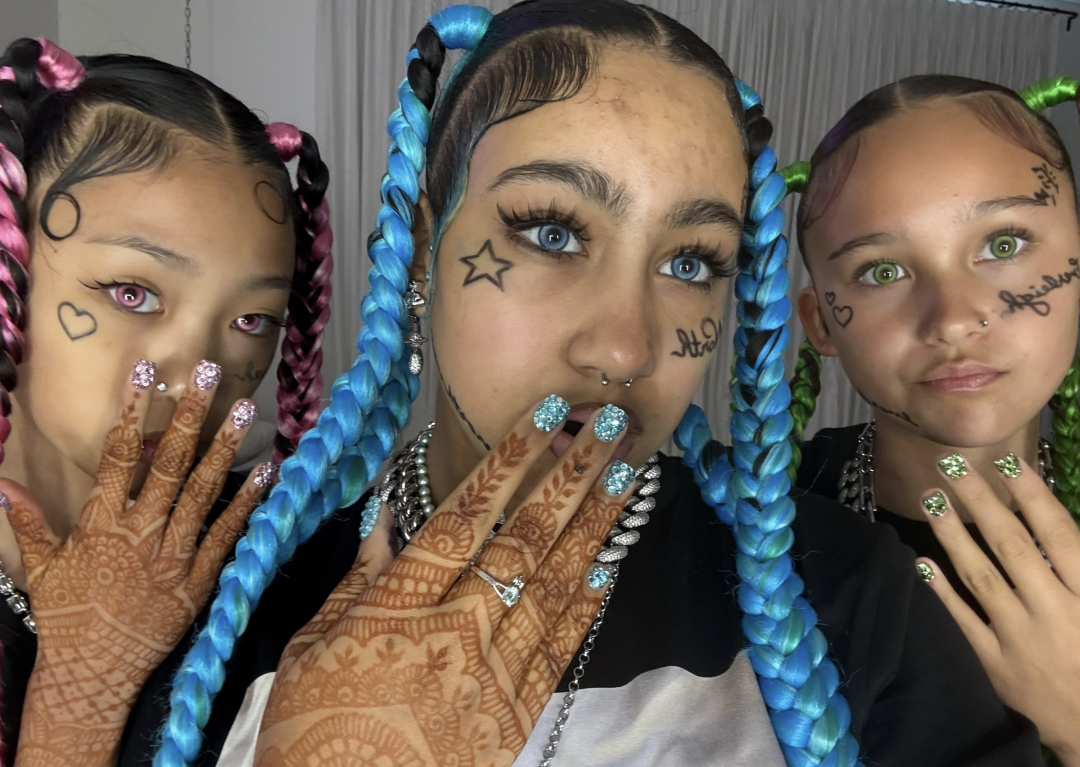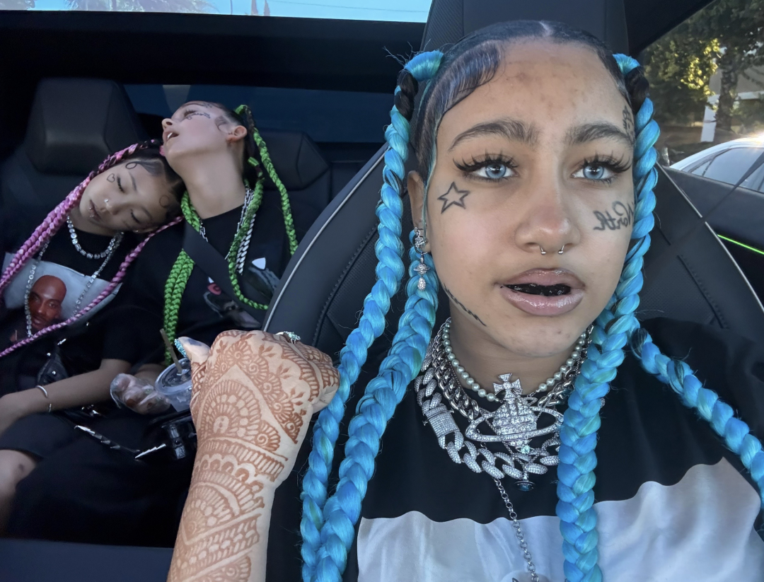 Норт Уэст, 12-летняя дочь Ким Кардашьян и Канье Уэста, вновь привлекла внимание своим образом. Она опубликовала несколько видео в TikTok где появилась с длинными синими косами, голубыми линзами, «грилзами» на зубах, татуировками и пирсингом в носу.