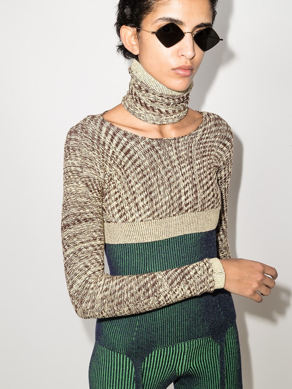 Необычная ромбовидная оправа в золоте и серые линзы — если защищаться от солнца (скрывать свой осуждающий взгляд или последствия воскресной вечеринки от коллег), то лишь в модели от Saint Laurent.