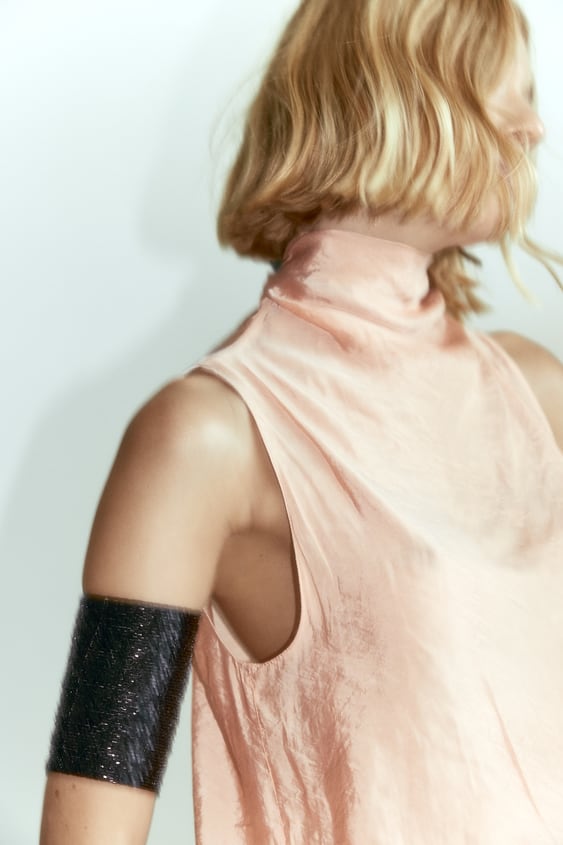 Отправились на поиски! В Zara был найден бюджетный вариант, который можно носить как на запястье, так и на предплечье — диаметр украшения регулируется.