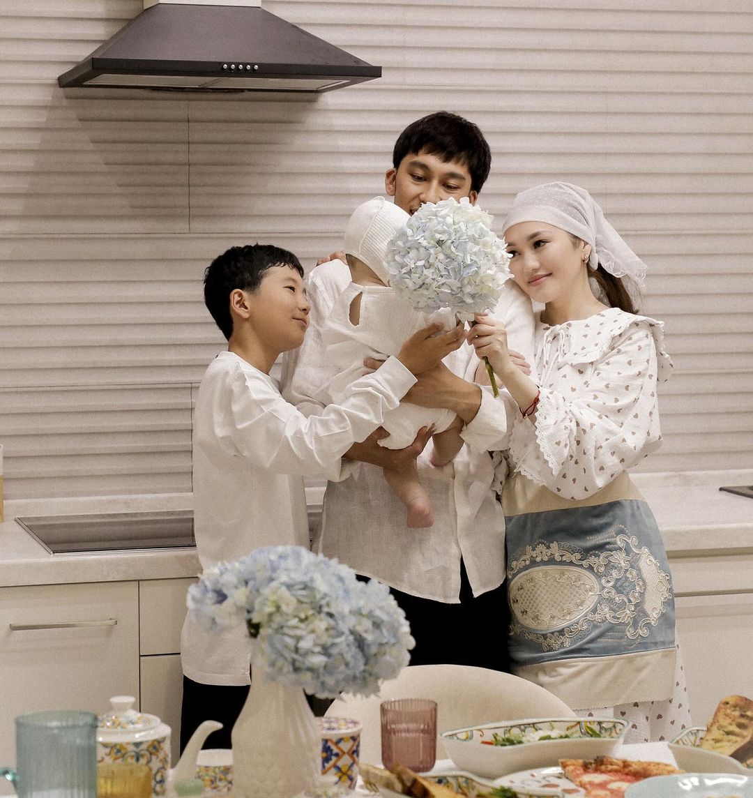 Ерке мен RaiM ұлдары Исламның ерекше күнін үйде әдемі суретке түсіп атап өтті. Әнші нәзік ақшыл көйлек киіп, алжапқыш тағып, басына орамалмен, жұбайы мен екі баланың қасында суретке түсті, олар да ақ киім киген.
