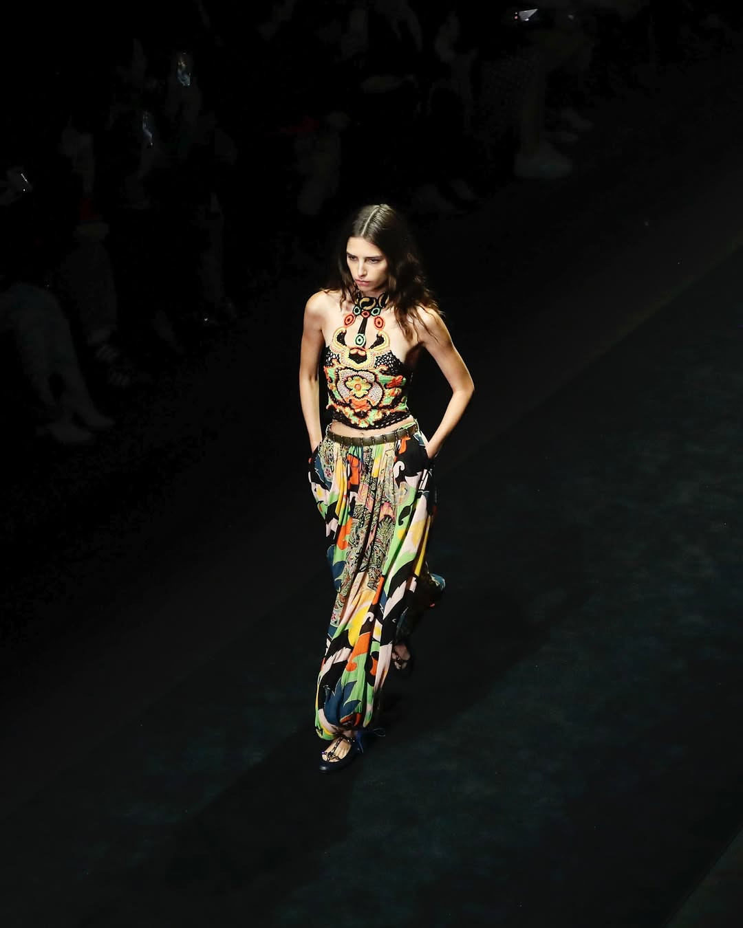 Шоу прошло внутри шатра, установленного в казармах на юге Милана, и с первых минут гостей поглотило буйство красок. Казалось, на подиум ворвались красавицы прямо с карнавала в Рио-де-Жанейро. Пайетки сверкали, подолы кружились, а силуэты излучали дикую сексуальность.