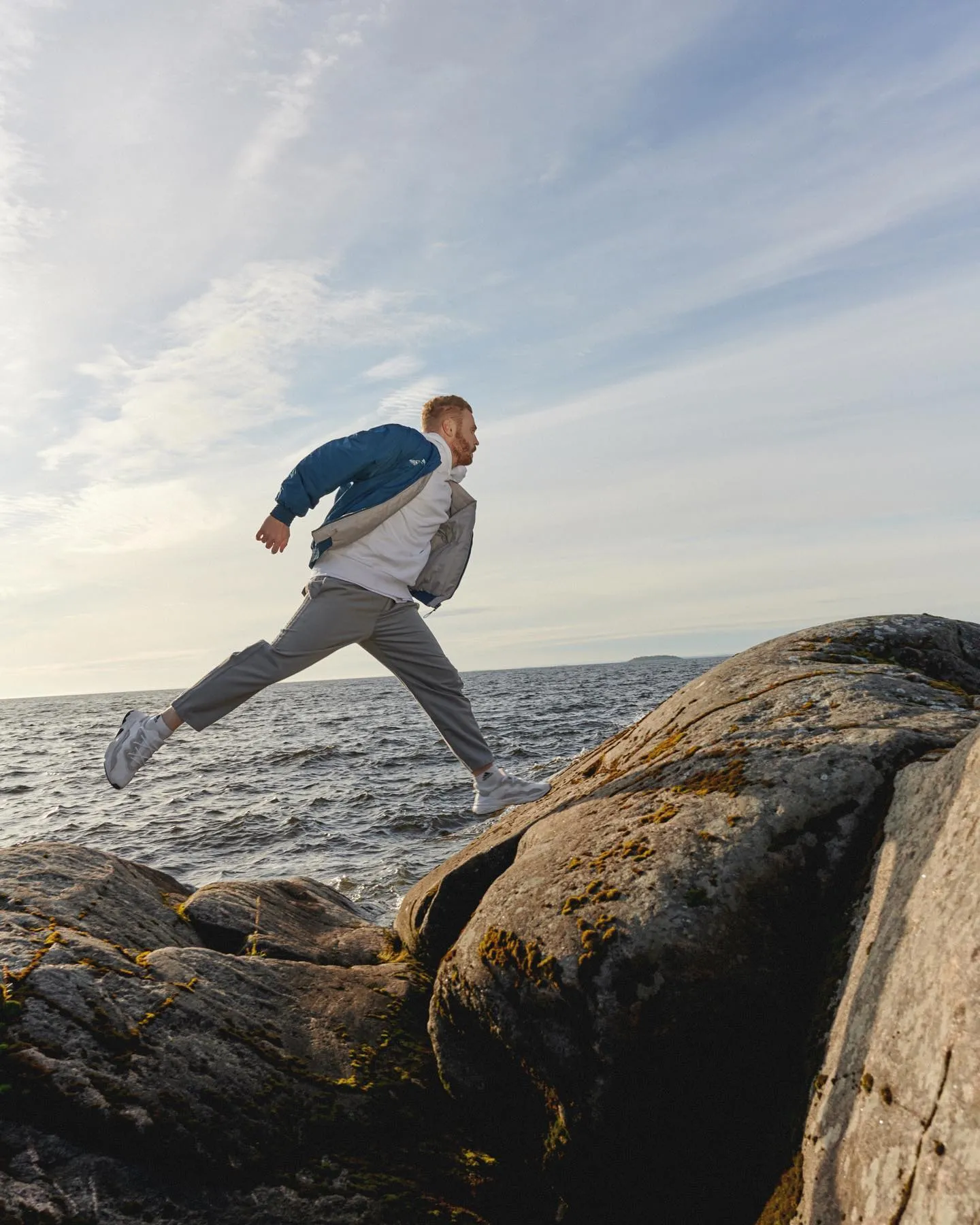 В дебютной спортивной и урбанистической коллекции представлены двусторонний бомбер, хлопковые худи, футболки и носки.