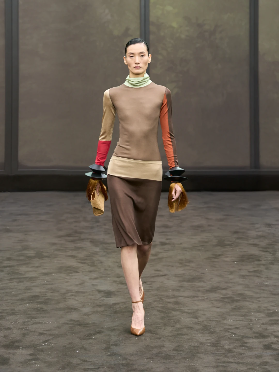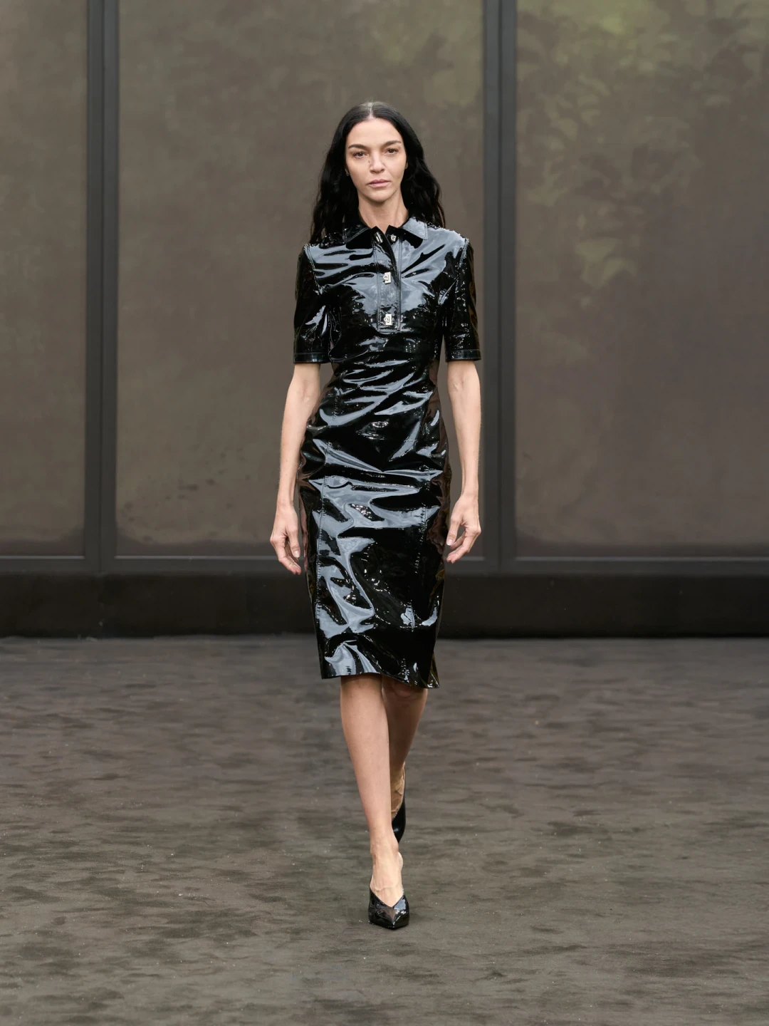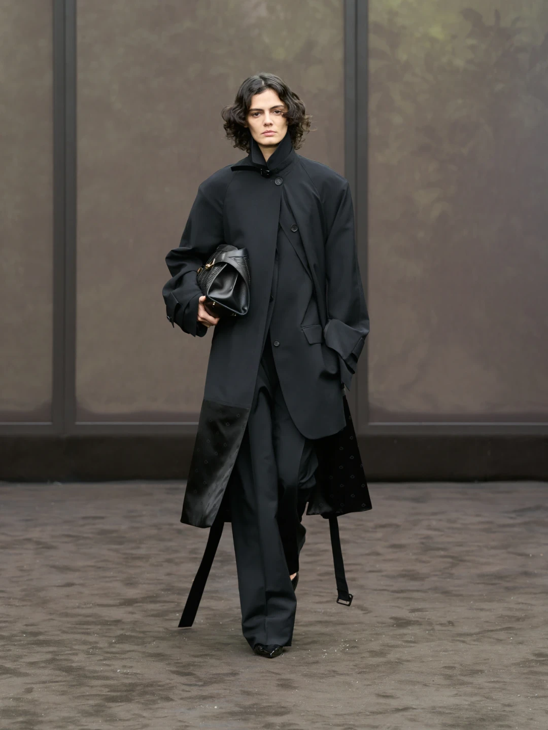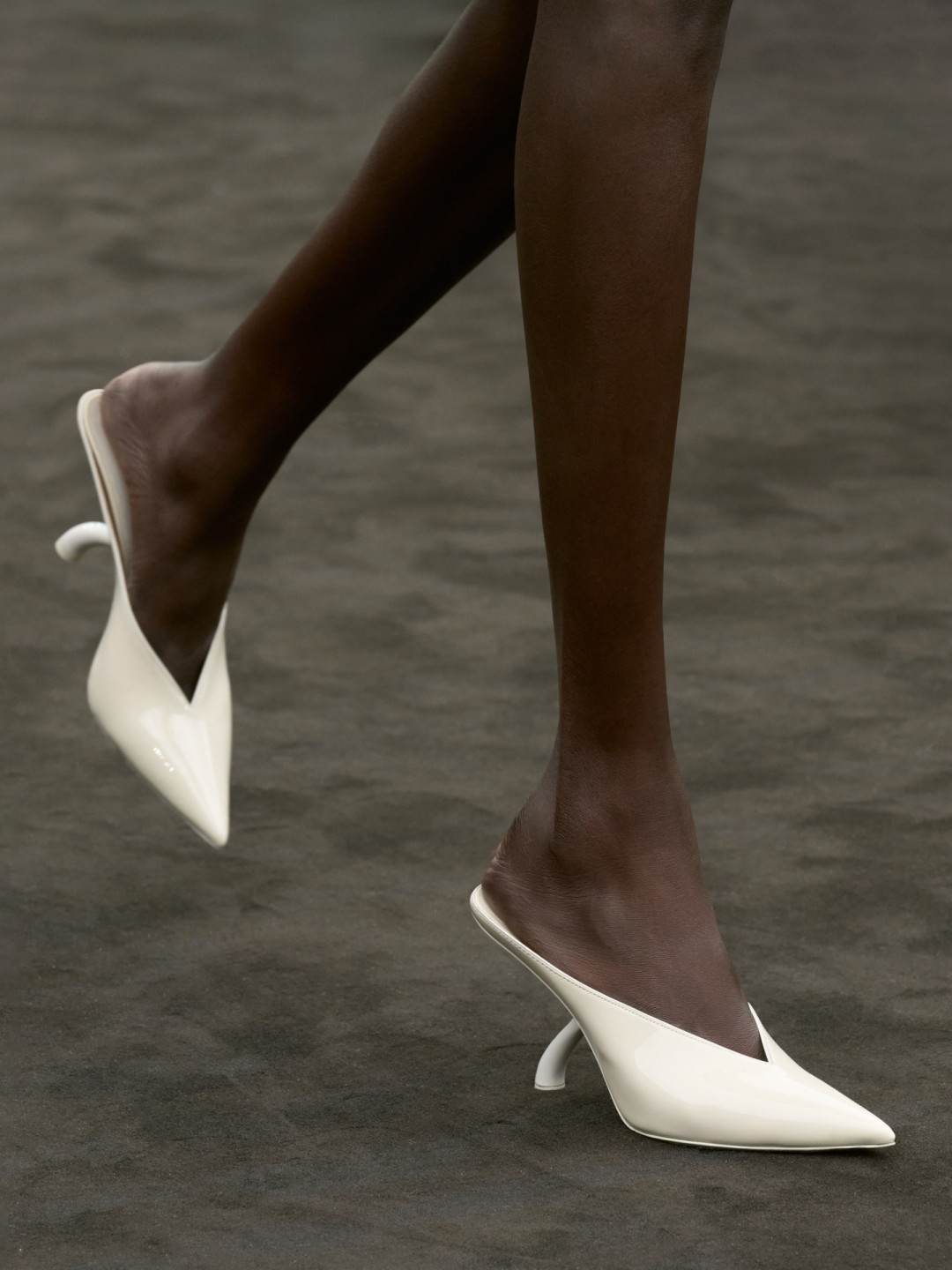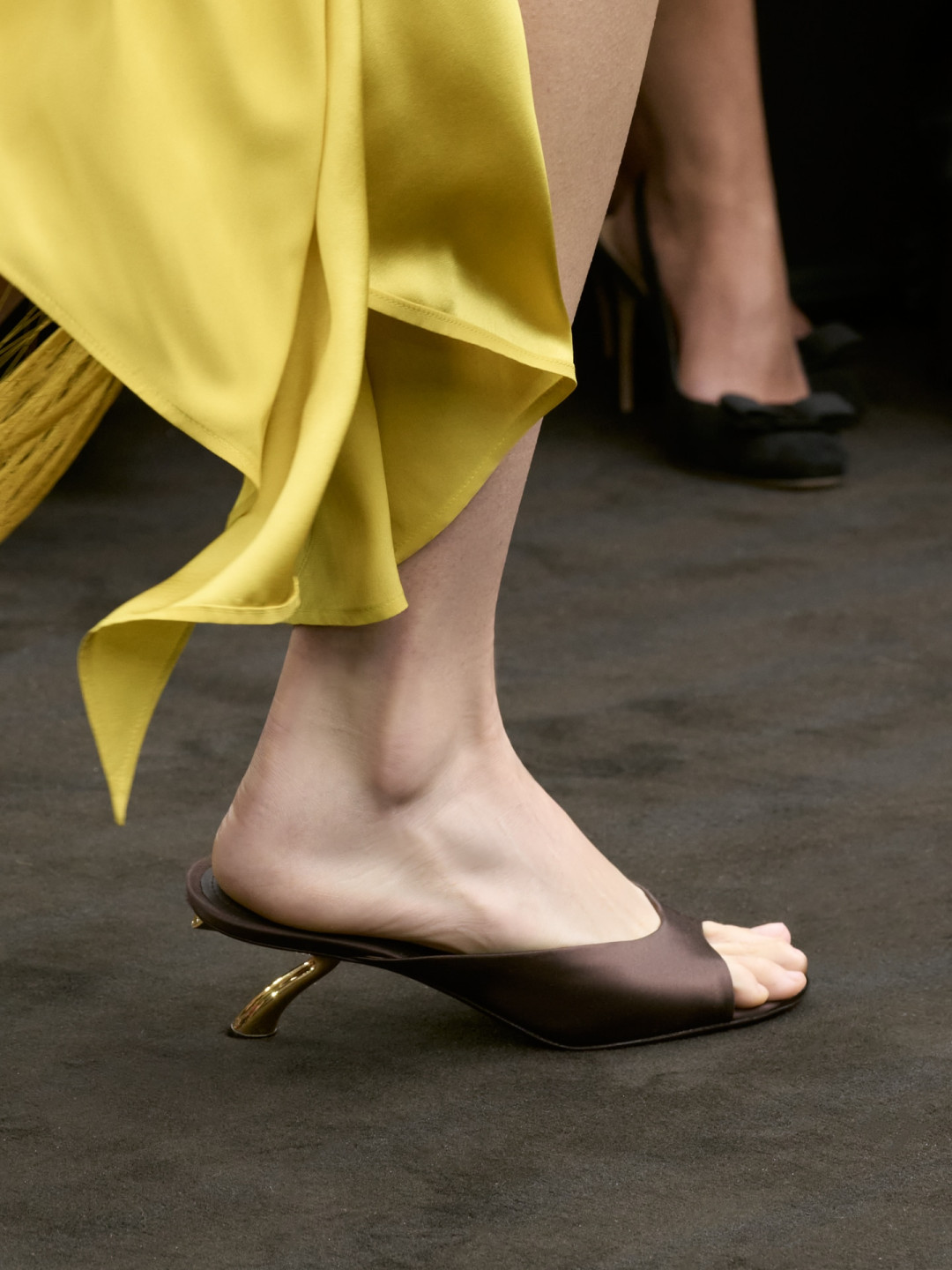 Обувь всегда была сердцем Ferragamo — и в этот раз дизайнер не изменил традициям. Одни модели демонстрировали «клетчатые» туфли в духе 1920-х, но в остром современном прочтении, а другие — сатиновые мюли с бантами и блеском бисера. И все же настоящим фаворитом редакции стала обновленная сумка Hug. В этом сезоне она предстала в трех ипостасях: строгая и сияющая в лакированной коже, роскошная с крокодиловым тиснением и дерзкая — с игривыми перьевыми кистями.