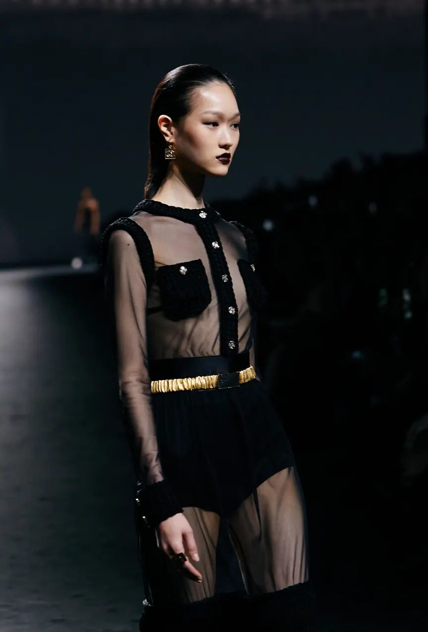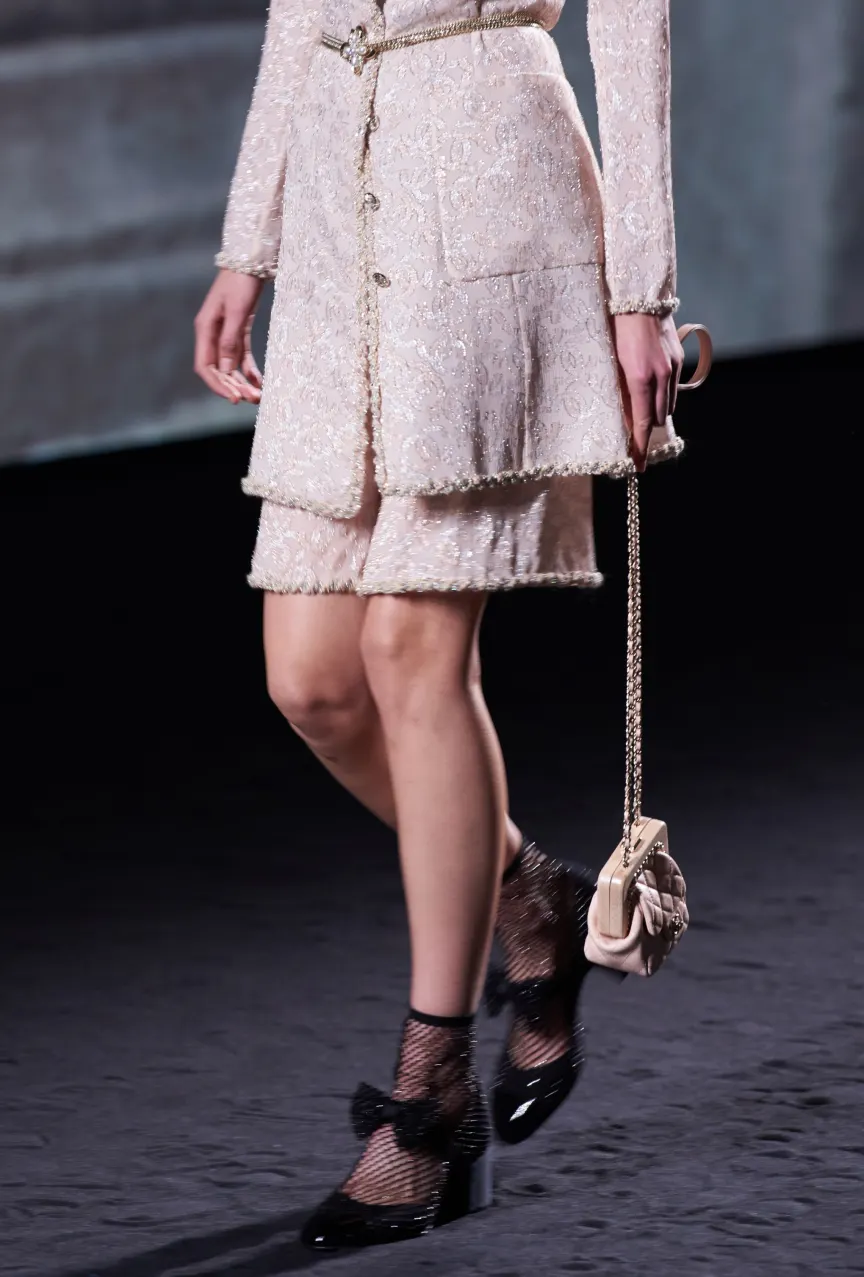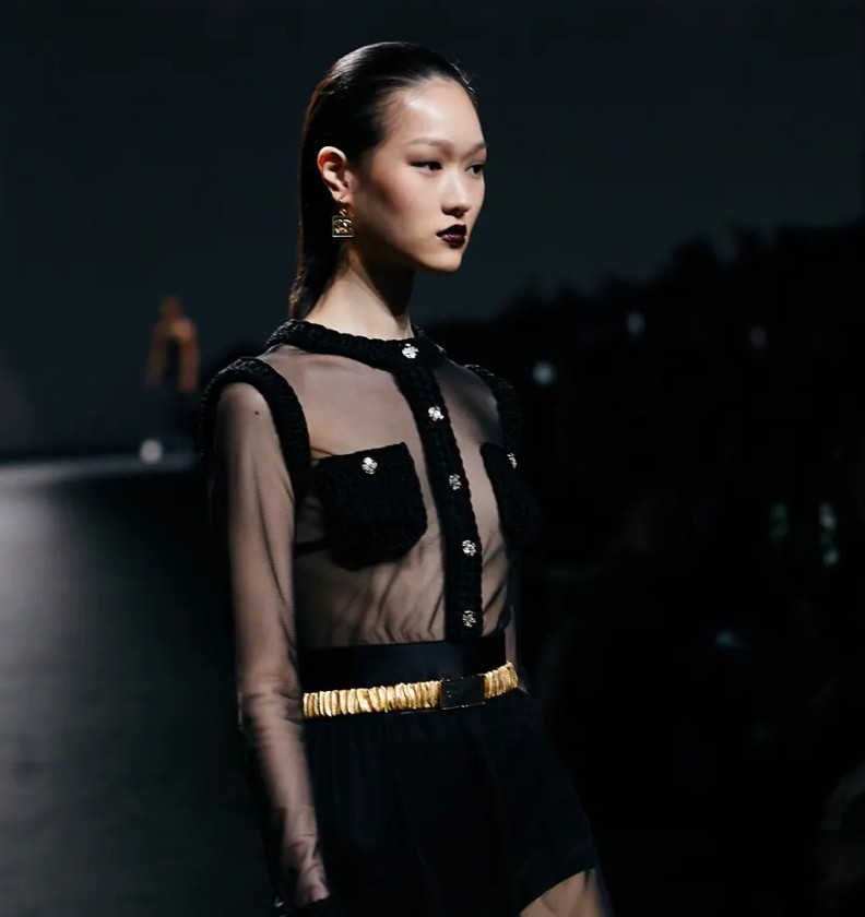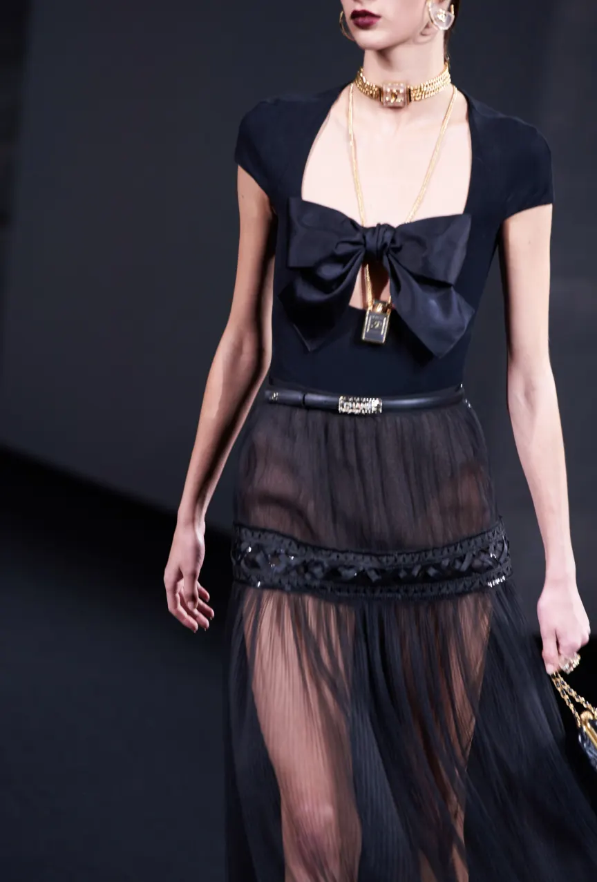 Креативный директор Chanel Виржини Виар привнесла нотку старого голливудского гламура в коллекцию SS23. Вдохновением для коллекции послужило кино 1960-х годов – черно-белые кадры были и в приглашениях на показ, и на принтах, и цветовая палитра самой коллекции практически не выходила за эти рамки.