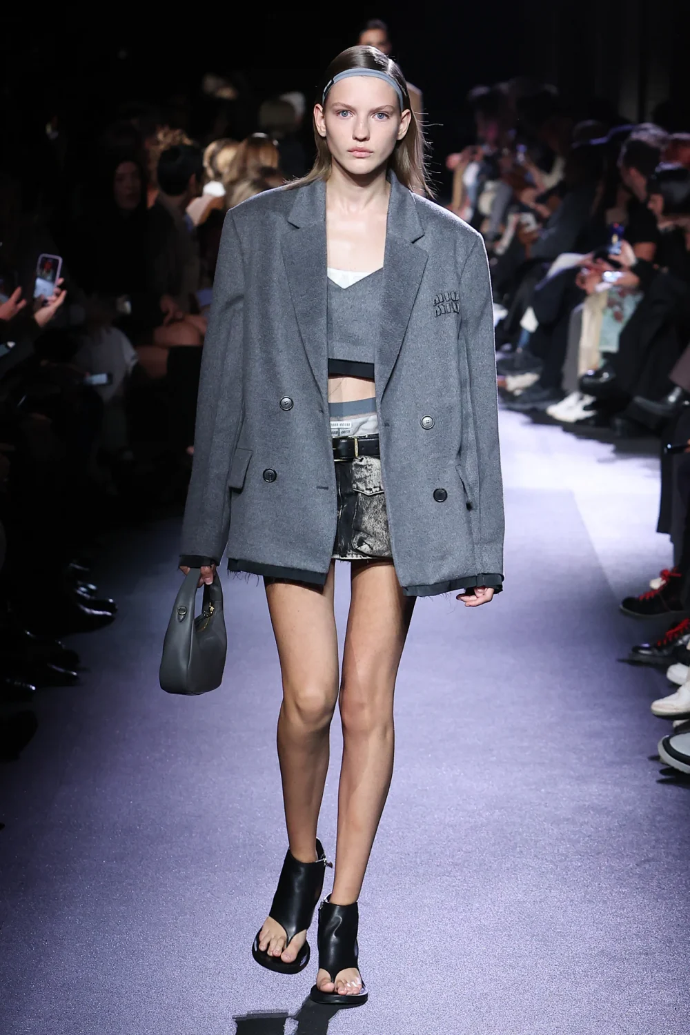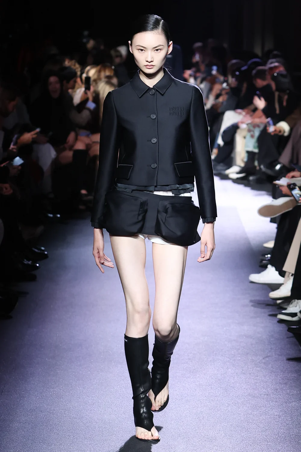 Не обошлось и без тех самых мини-юбок! Поэтому если вы задавались вопросом, сохранится ли тенденция на них в сезоне весна/лето 2023, то уходить с подиума тренд пока не намерен. Однако теперь мини-юбки были дополнены крупными накладными карманами. Кажется, что помешательство на стиле карго дошло и до Miu Miu.