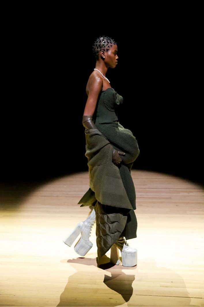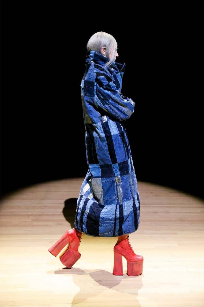 Ирокезы и яркое окрашивание — на протяжении всего показа панковские отсылки напоминали о ранних работах дизайнера. На моделях был надет жемчуг в один круг в знак уважения Вествуд. В общем, все, что мы так любим у Вивьен и Марка, соединилось воедино. Главной деталью коллекции стали ботильоны Kiki на невероятной платформе. То, как бодро модели шли по подиуму на них, невзирая на высоту, завораживает. Высота платформы настолько головокружительна, что сама Наоми Кэмпбелл упала на показе Вествуд осенью 1993 года. Да, высотки Marc Jacobs продолжают шагать и в новой коллекции — на этот раз в еще больших вариациях. От страз до глубокого цвета марсалы — эта модель имеет все шансы встать в один ряд с культовыми Tabi Maison Margiea.
