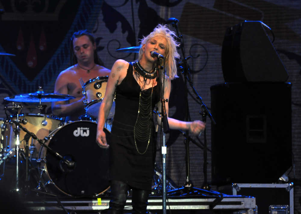 Свой первый публичный голый выход Корни Лав совершила в 1999 году, выйдя на сцену бостонского театра топлес и исполнив свои песни. В 2010 году она появившись на интервью с журналистом New York Times Эриком Уилсоном в чем мать родила. За свой проступок позднее Кортни оправдалась, сославшись на чрезмерное употребления алкоголя и антидепрессантов. Но через год голая выходка звезды повторилась на концерте певицы в Бразилии: Лав оголила грудь и указала на интимную часть тела пальцем.