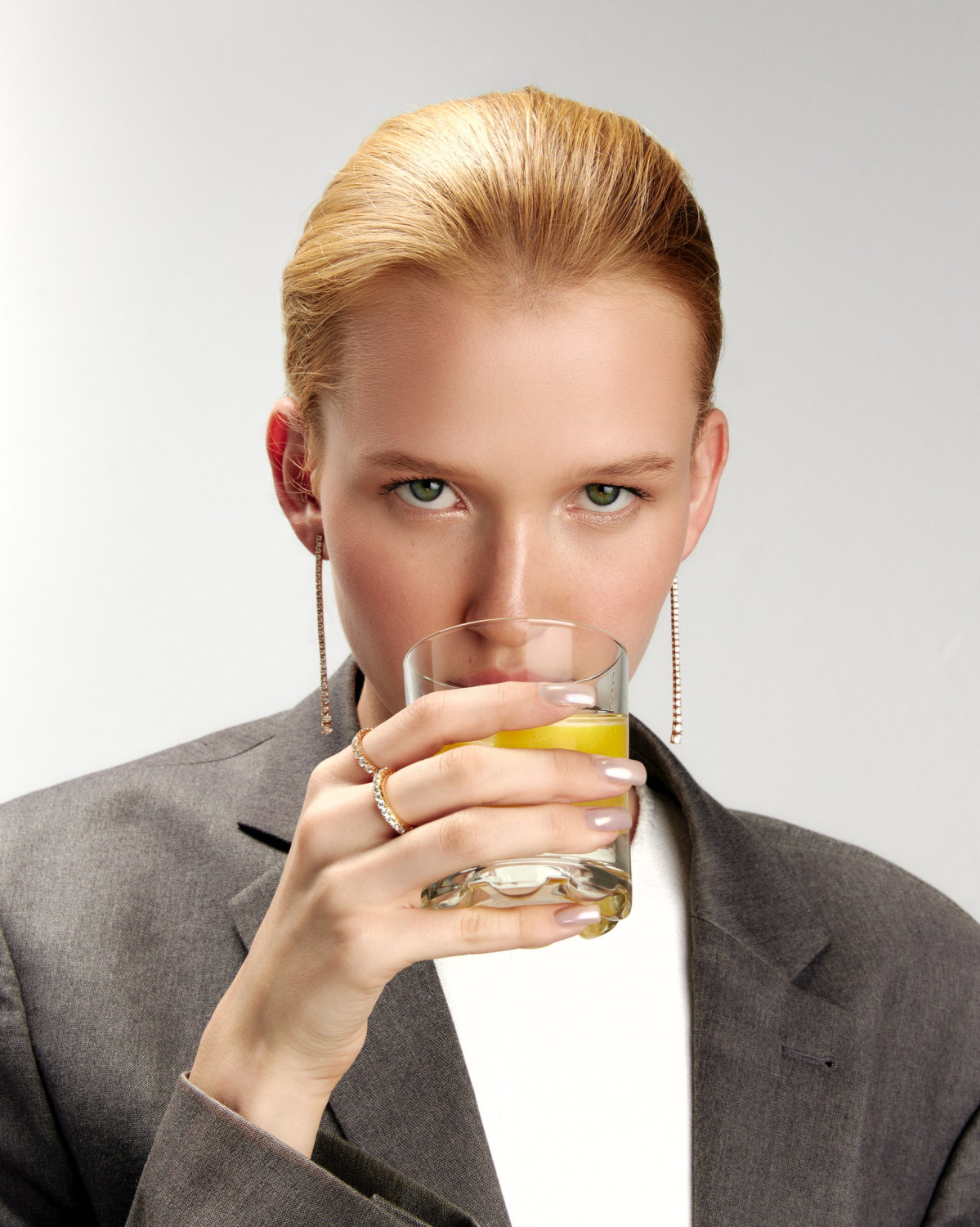 Jewels (Constella); Топ, брюки: собственность стилиста; Туфли: Celine, собственность стилиста.