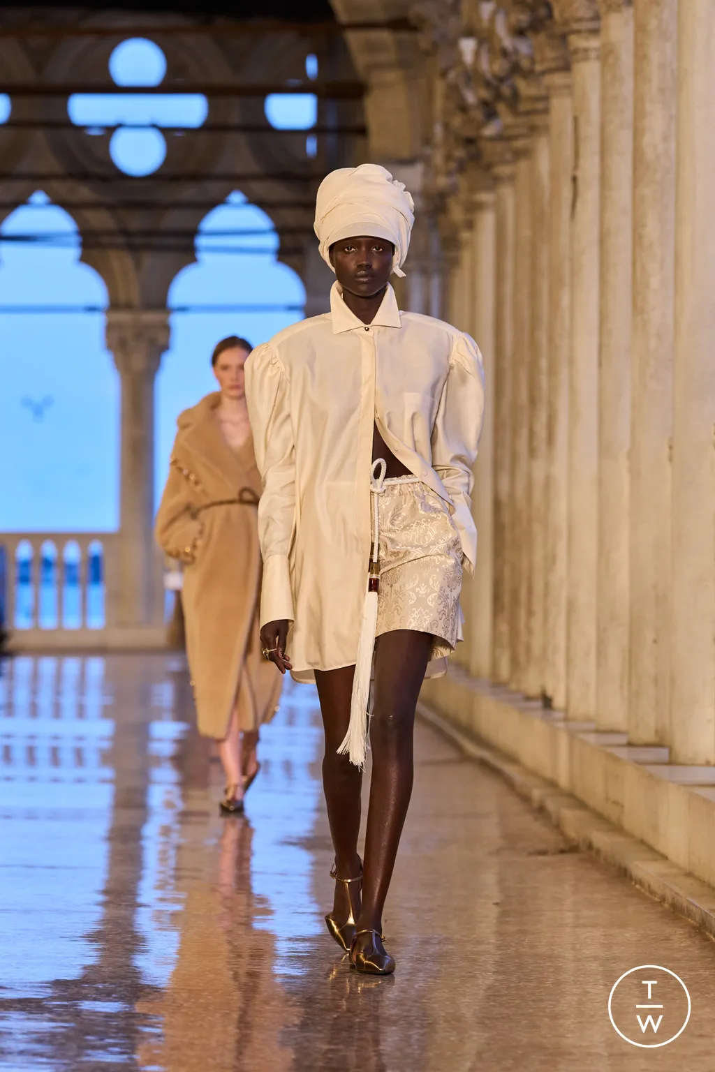 В эпоху странника Венеция стала очагом торговли и связующим звеном между Востоком и Западом, поэтому в изделиях прослеживалось немало антуража: от традиционной готической архитектуры города до индуистских, зороастрийских и китайских мотивов. К связи между регионами также отсылали тюрбаны, вдохновленные картинами Тинторетто с изображением османов, которые на протяжении веков были главными врагами Венеции, но чьи головные уборы восхищали итальянских художников.