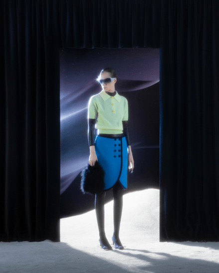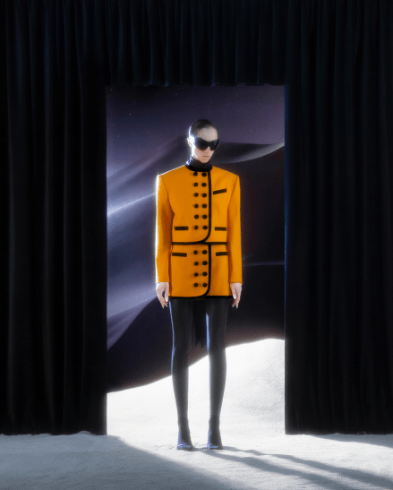 Наряды из коллекции FW21 это микс экстрима и винтажного гламура. Кажется, что женщина в одежде от George Keburia может легко телепортироваться в прошлое или будущее. Оказаться в Альпах, на глубине 5276 метров под водой или прогуливаться по площади перед Лувром.