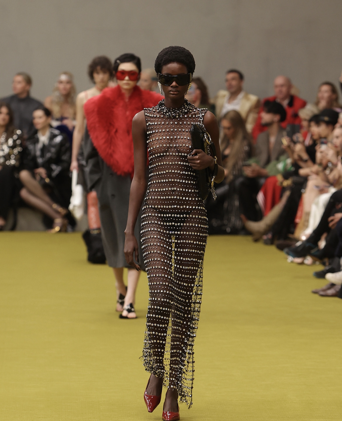 Отсылки к нулевым и 90-м, ретрофутуризм и вдохновение sci-fi-фильмами — похоже, и Jil Sander вступает на новую тропу. «Мы хотели, чтобы одежда поднимала настроение — изысканно просто и позитивно», — заявил дуэт перед показом. В этом сезоне супруги решили позаигрывать с насыщенными оттенками и разными текстурами. Цветочная графика и ракушки разместились на войлочных сумках-тоутах, а толстые серебряные браслеты, ожерелья, застежки и чокеры выглядели так, словно они были небрежно расплавлены.