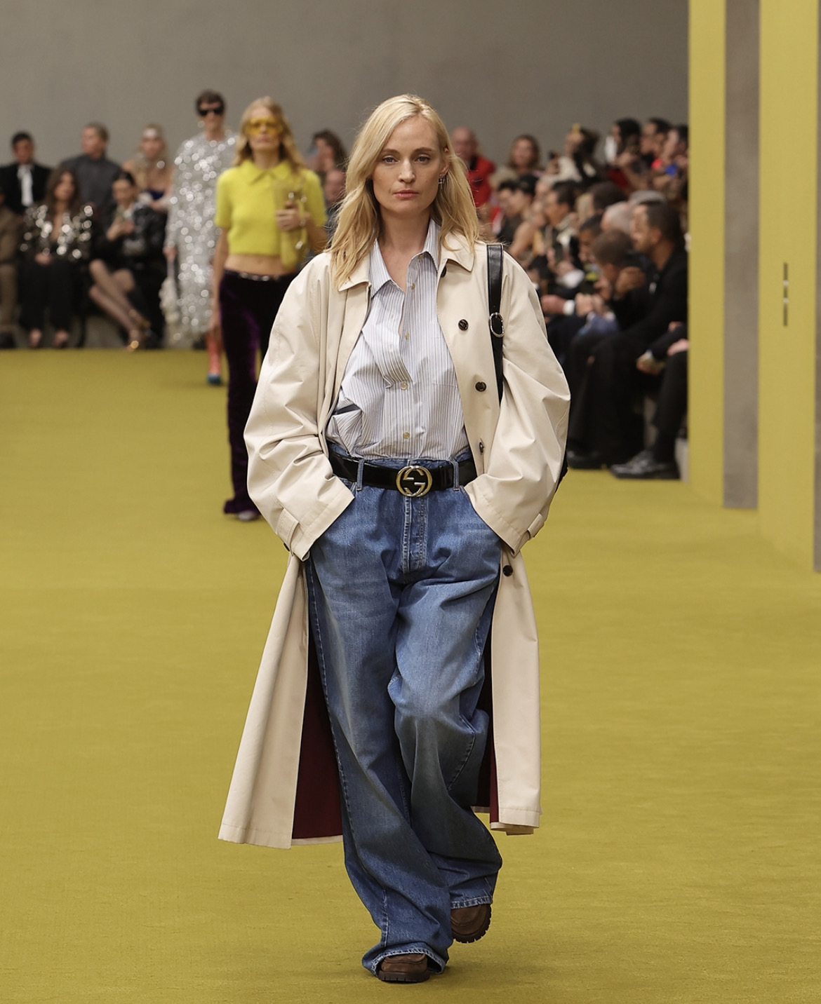В конце января этого года Gucci объявил о том, что модный дом вступает в новую эпоху во главе с Сабато де Сарно. Он представит свою линейку только осенью — над образами в этом сезоне работала команда из дюжины дизайнеров. В представленной коллекции органично сочетались воедино ключевые элементы Микеле и отсылки к креативному экс-директору Тому Форду.