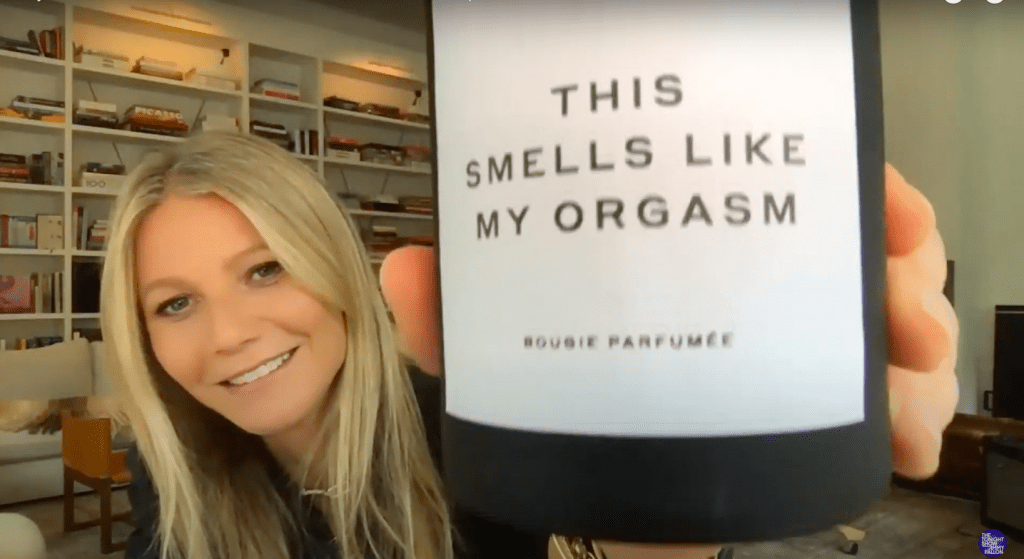 Новую свечу Гвинет представила на шоу Джимми Феллона, добавив, что к ней прилагаются фейерверки.
