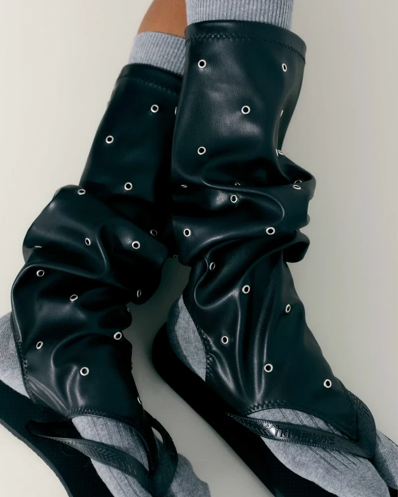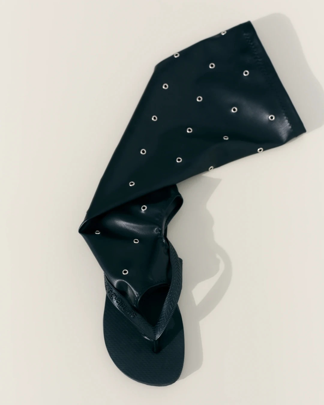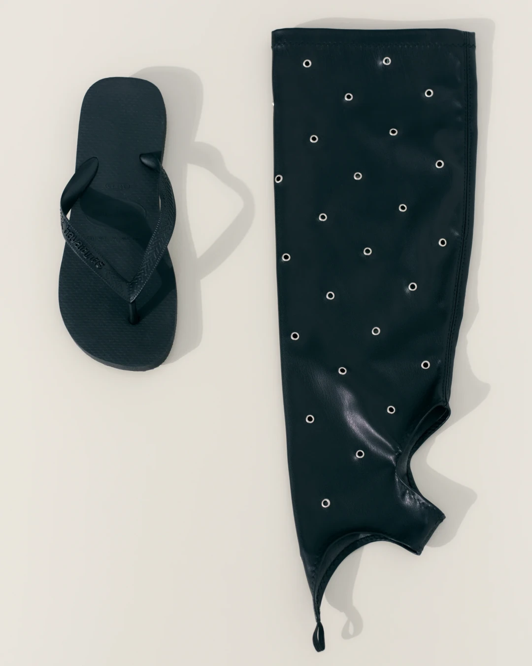 Теперь Havaianas предлагает посмотреть на flip-flops с совершенно другой стороны — и доказывает, что они могут звучать гораздо выразительнее. В коллаборации с испанским дуэтом Gimaguas бренд вводит в игру кожаные гетры, которые в миг превращают знакомую классику в fashion-объект.