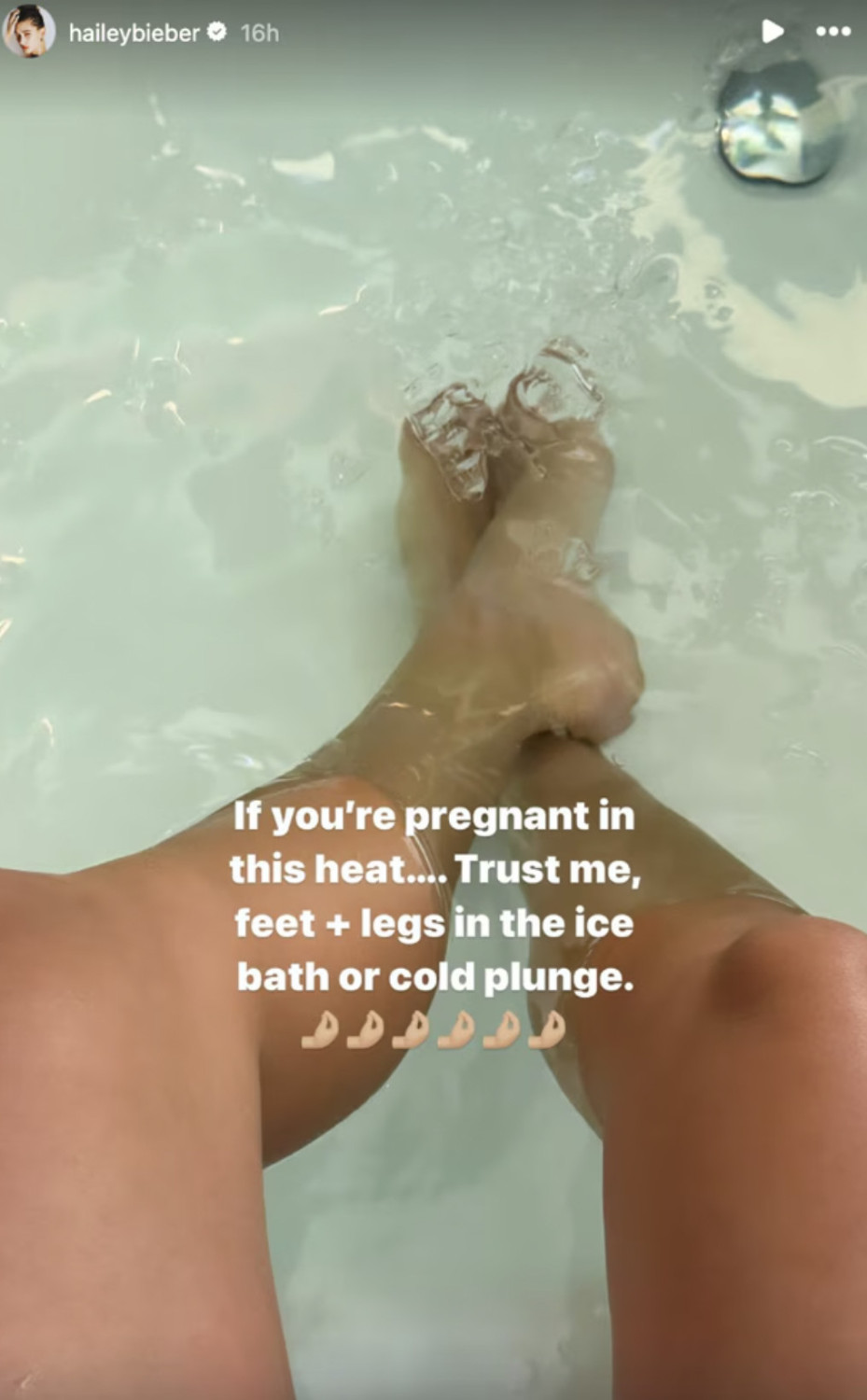 27-летняя Хейли Бибер, ожидающая в скором времени появление своего первенца, поделилась лайфхаком, который помогает ей бороться с жарой во время беременности.