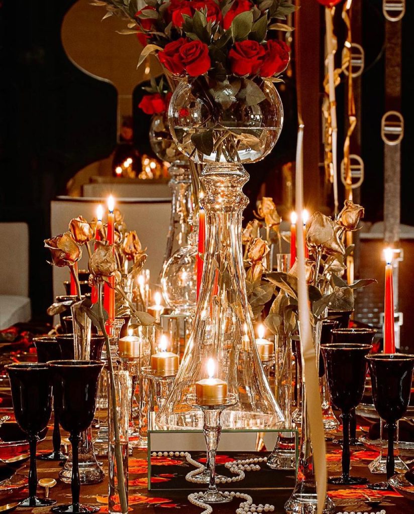 “Однажды Виктория Моминбаева заказала мне организацию своего дня рождения в столице и дала мне карт-бланш во всех вопросах” - рассказывает Амер. “Я только лишь спросил: “Какой образ Вы выбрали для торжества?” Она выслала мне фото платья Dolce & Gabbana и мы взяли его за отправную точку. Концепция дня рождения была построена вокруг фильмов Феллини с присущей им атмосфере и атрибутами”.