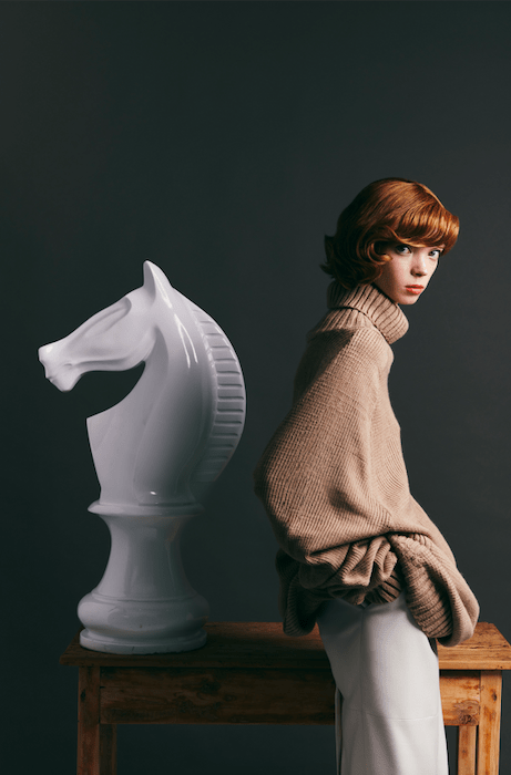 "Когда я впервые увидел главную героиню "Ферзевого гамбита", то понял, что мечтал бы ее одевать. Тогда я и задумал сделать съемку, в которой будут собраны образы именно для Бет Хармон",