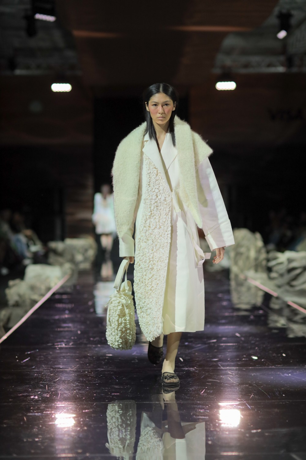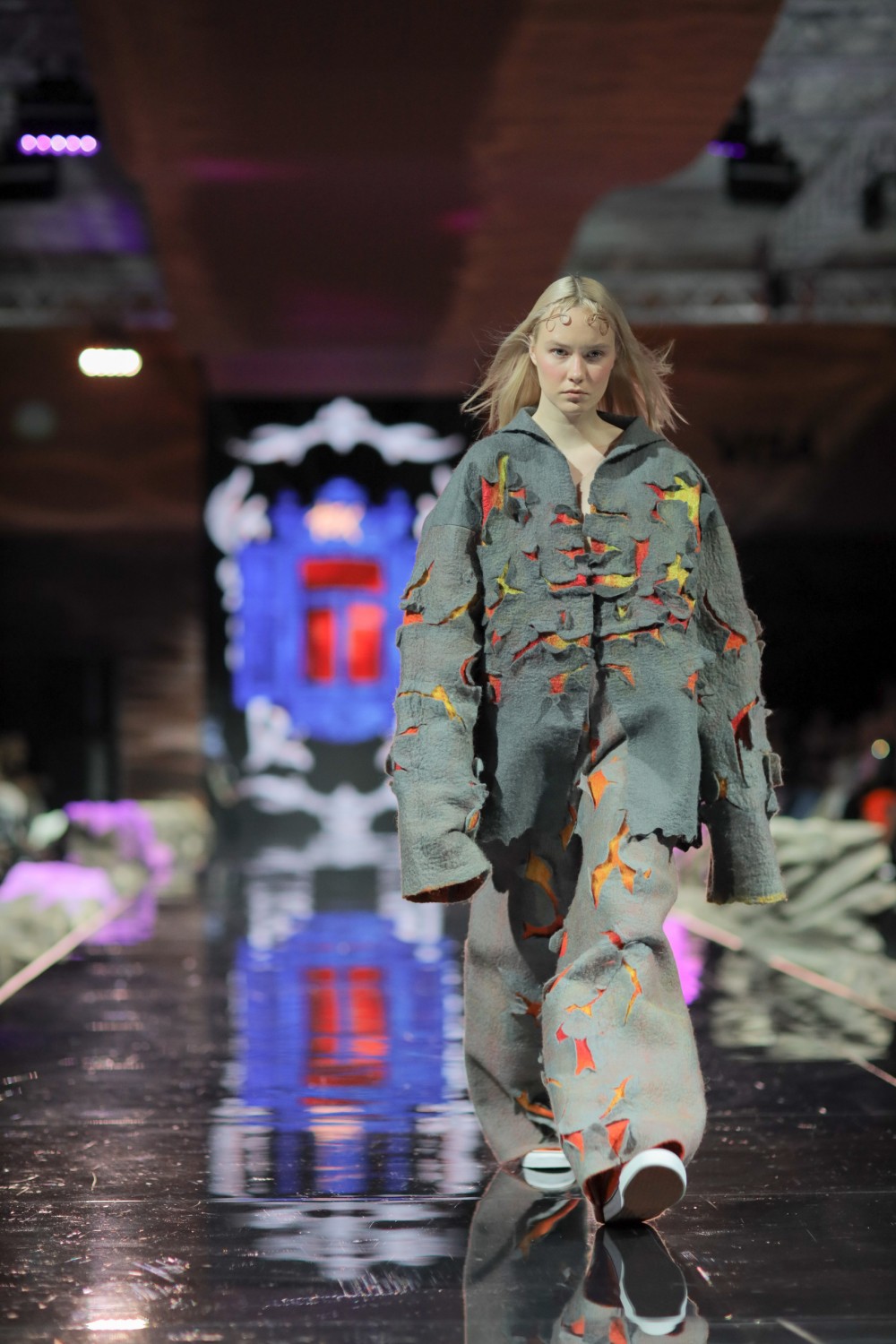 В коллекции Роксана исследует центрально-азиатские традиционные техники войлокования в попытке дизайнера достичь экологичного безотходного производства.
