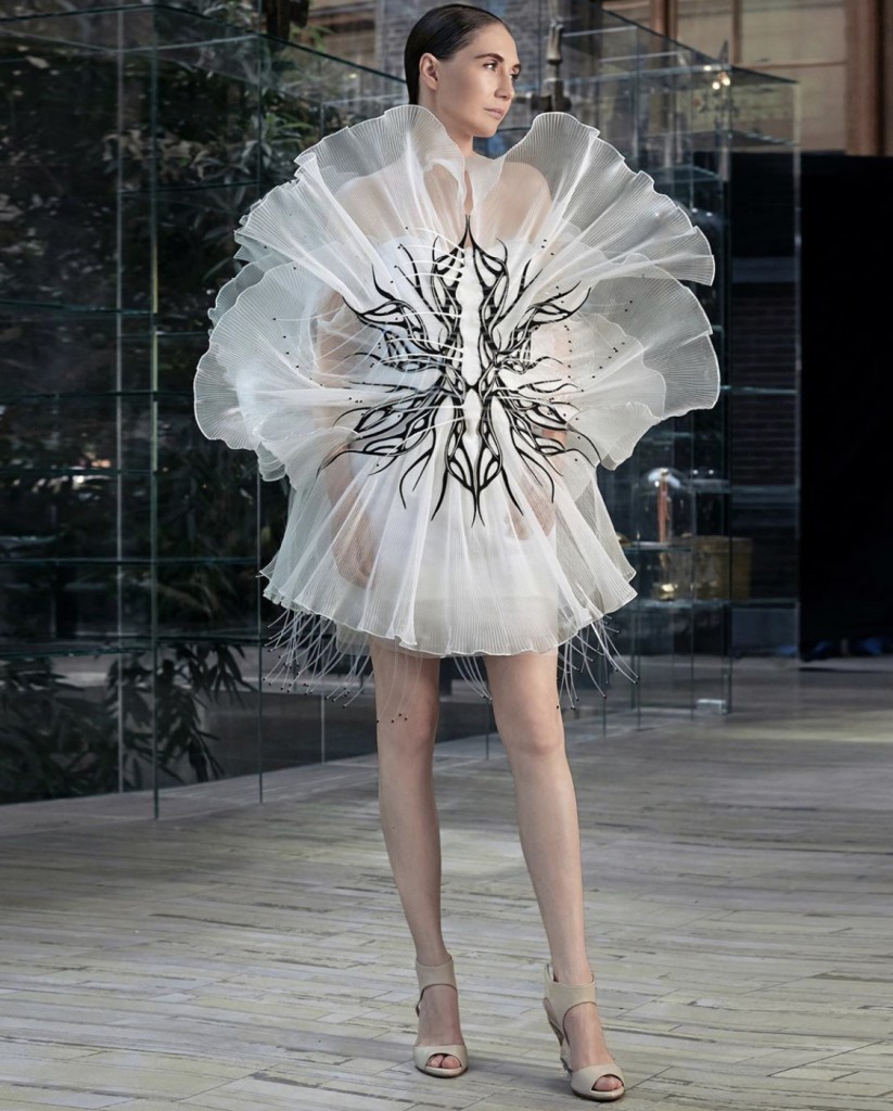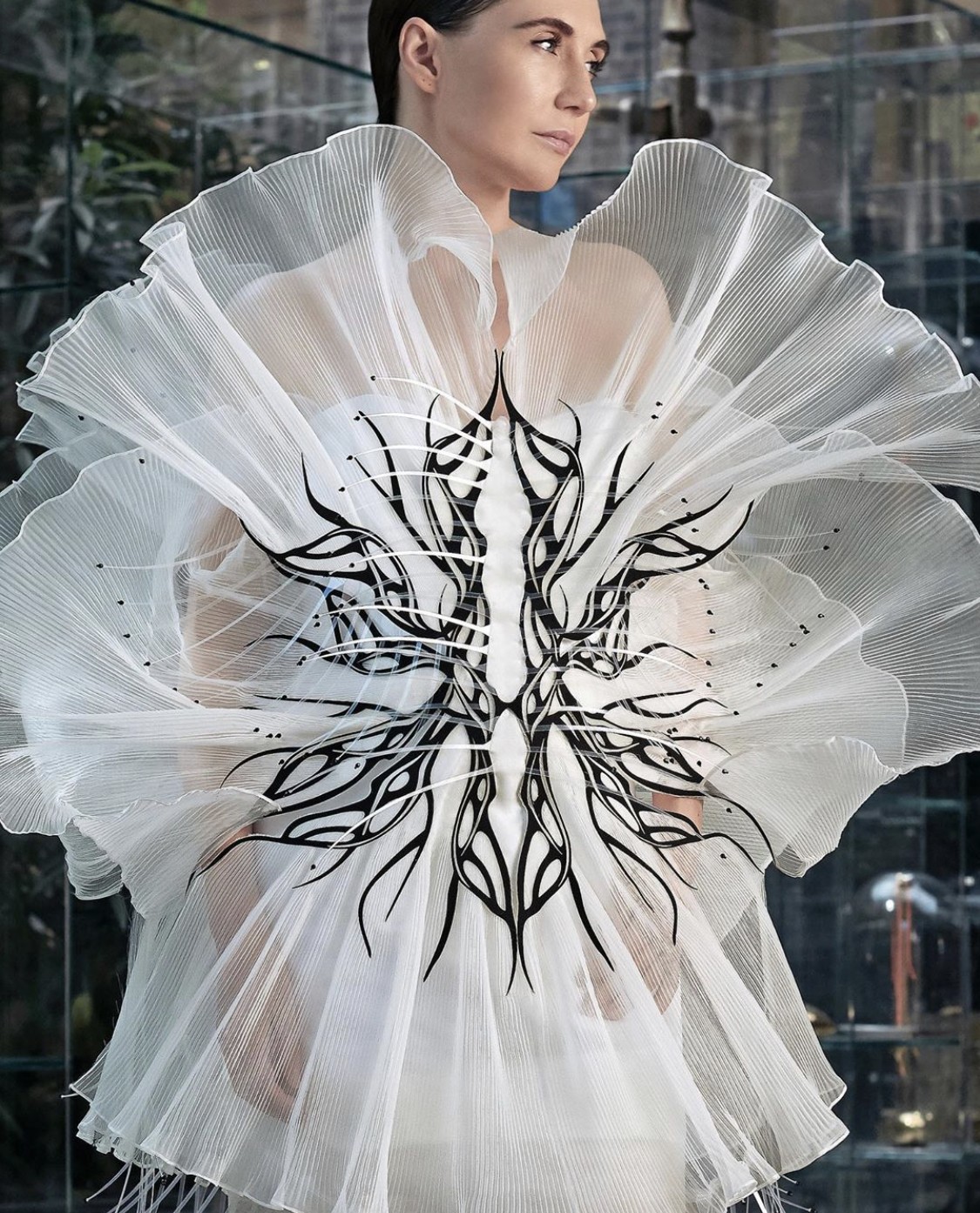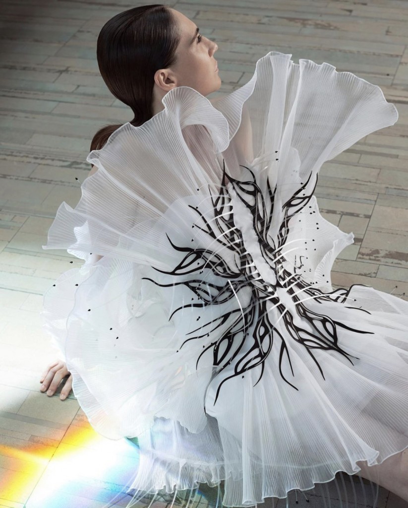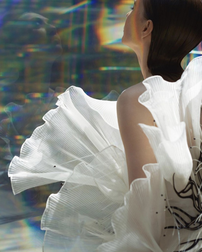 Впервые Неделя высокой моды началась в digital-формате. Зато мы можем увидеть не только коллекции, но и способность дизайнеров рассказывать истории в видеоформате. Одним из брендов, представивших свою кутюрную коллекцию, стал Iris Van Herpen – марка, созданная голландской модельершей, известной сочетанием технологий с традиционным мастерством высокой моды.