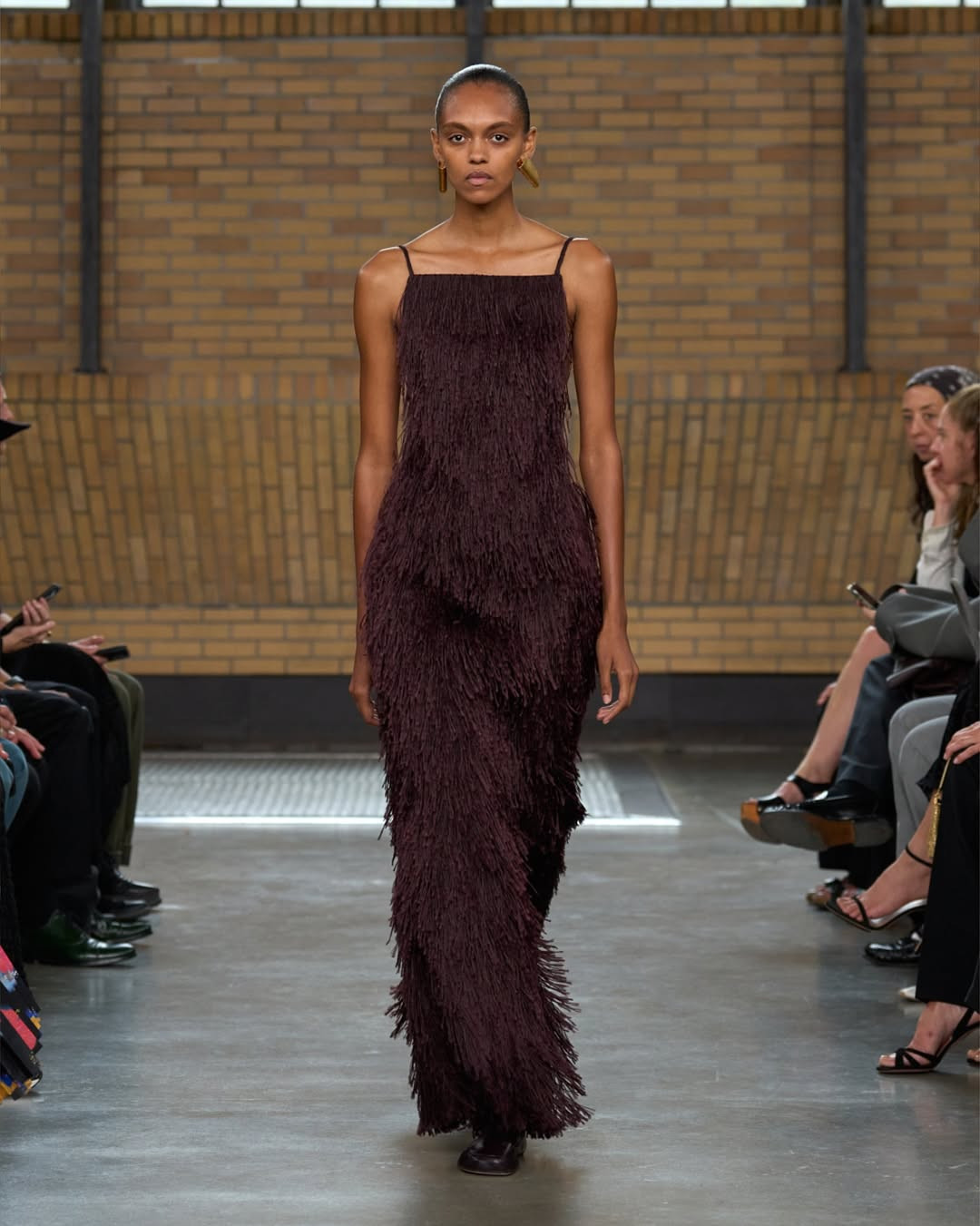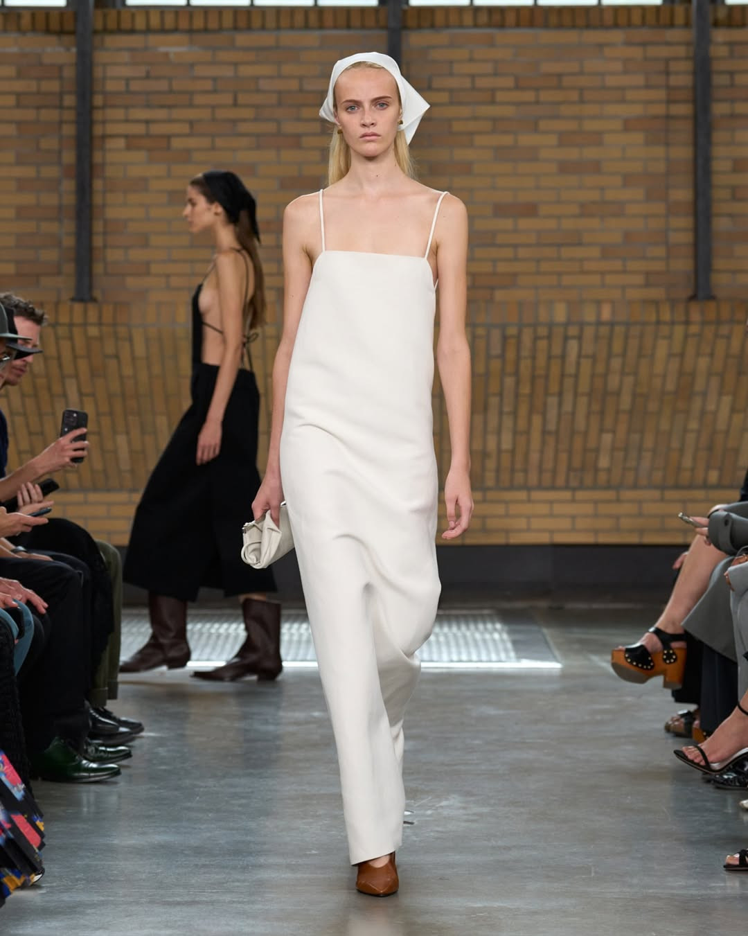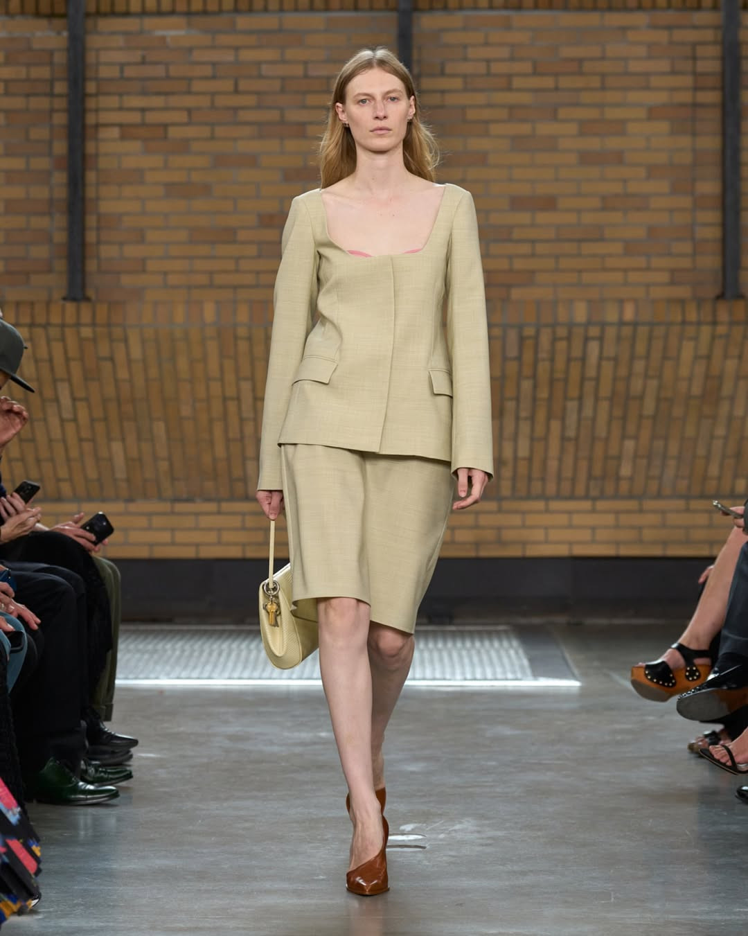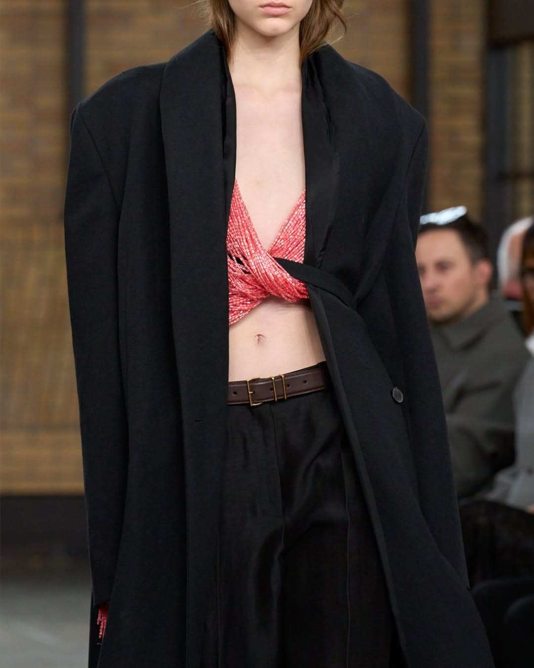 Это был показ-наблюдение, тихая хроника жизни в мегаполисе. «Бренд принадлежит людям больше, чем нам самим», — сказала Леони, и в этой фразе прозвучал манифест. Коллекция исследовала ту свободу, которая не требует доказательств — в смятой кожаной комбинации, в слегка странном костюме, в праве быть несовершенной и при этом красивой.
