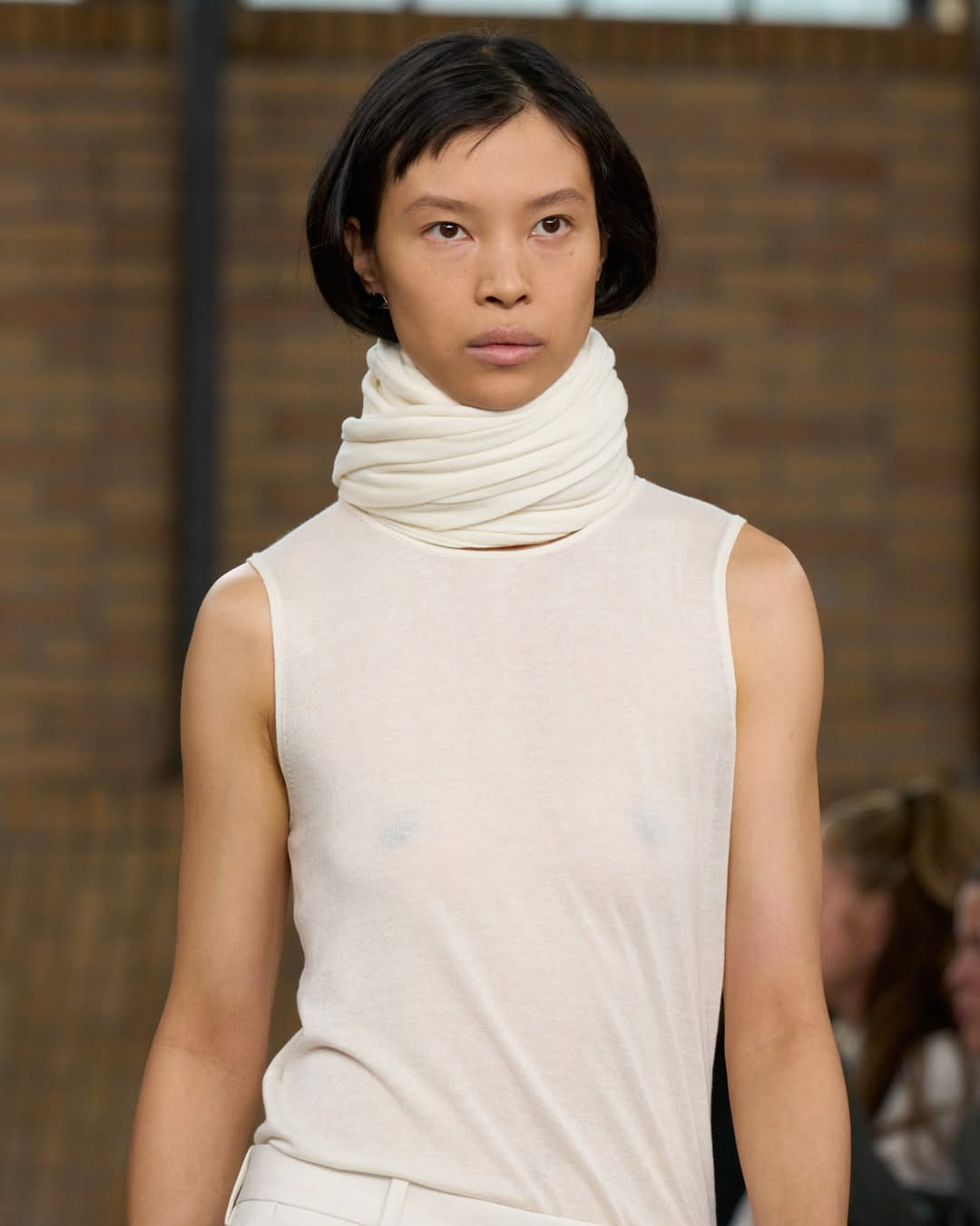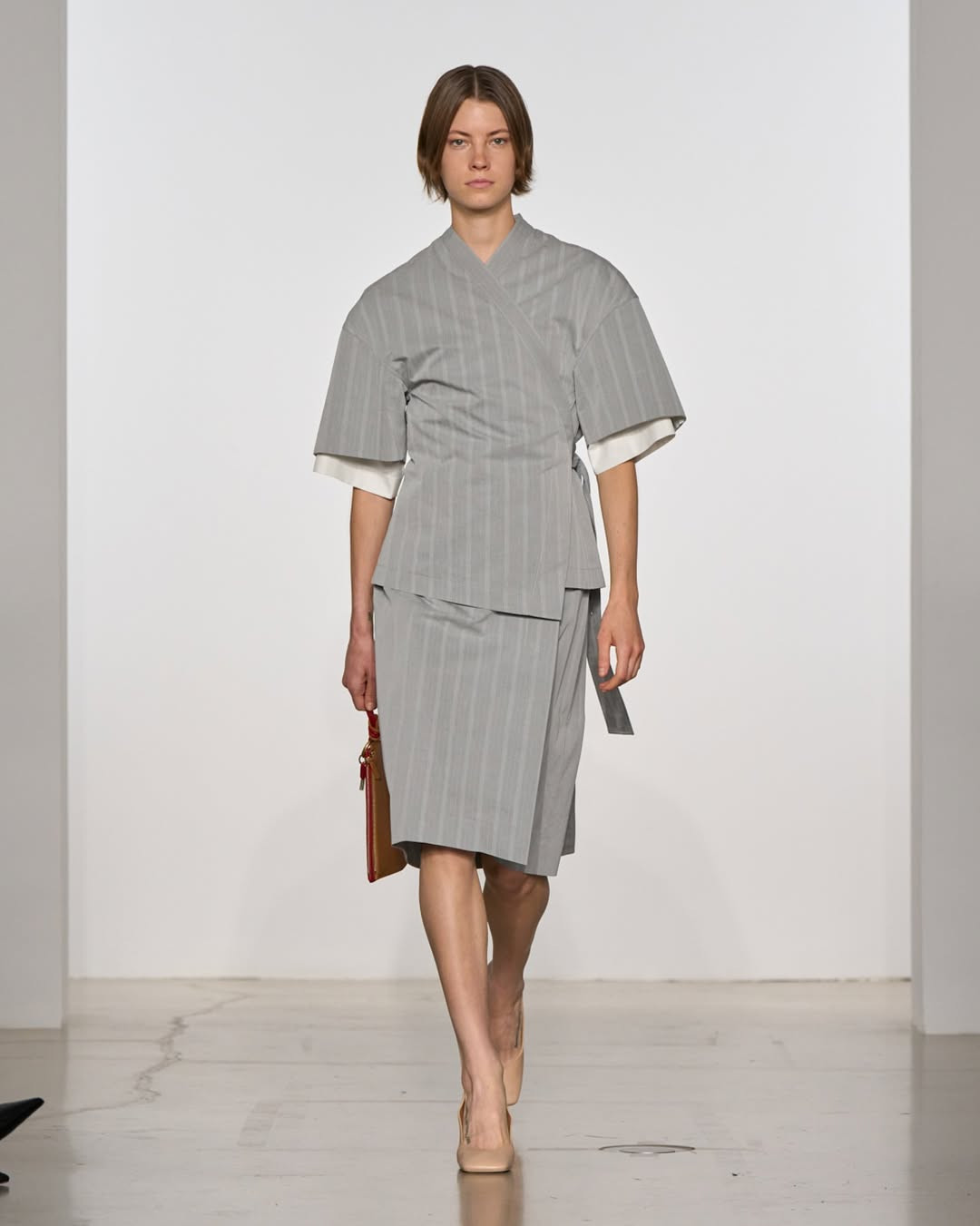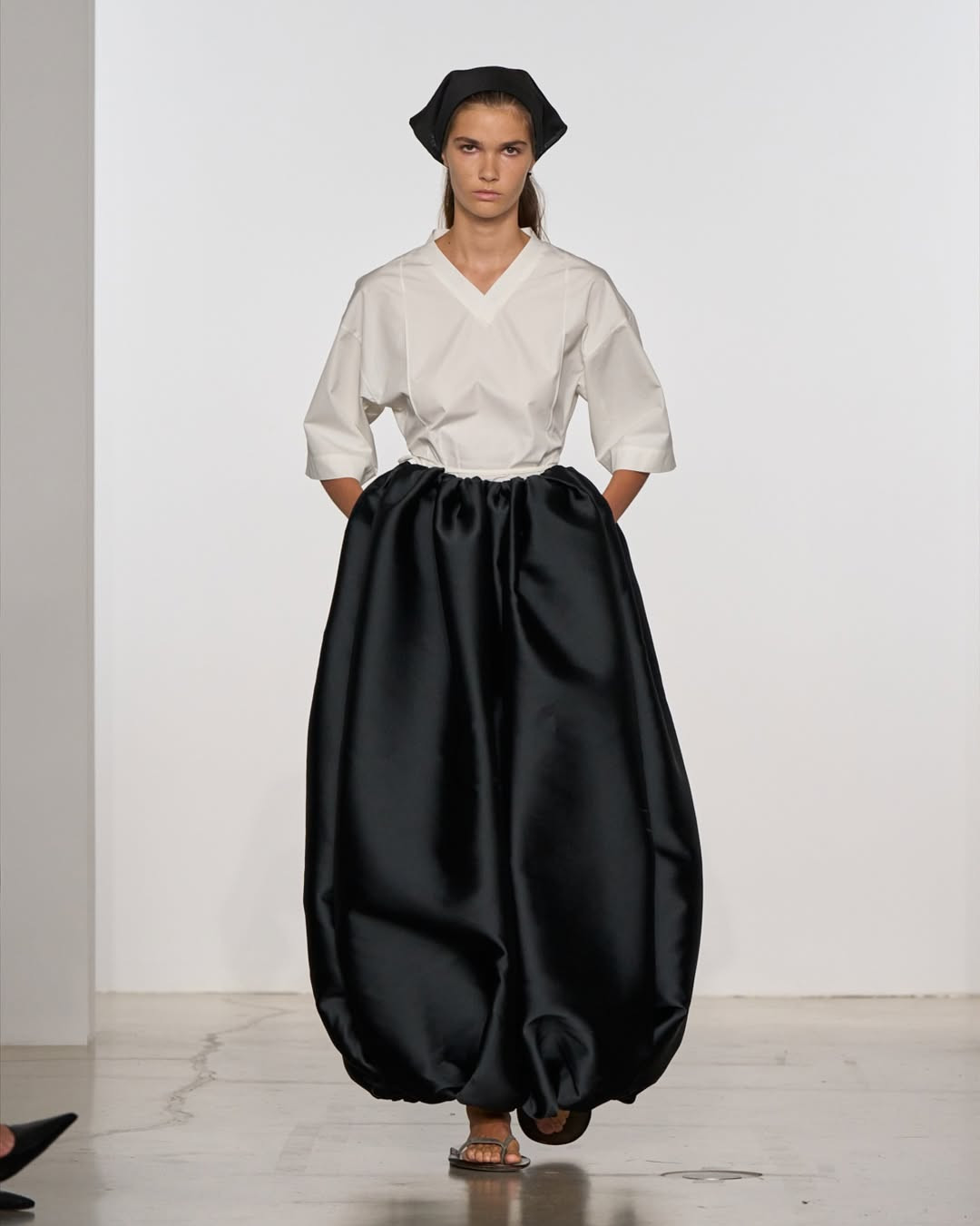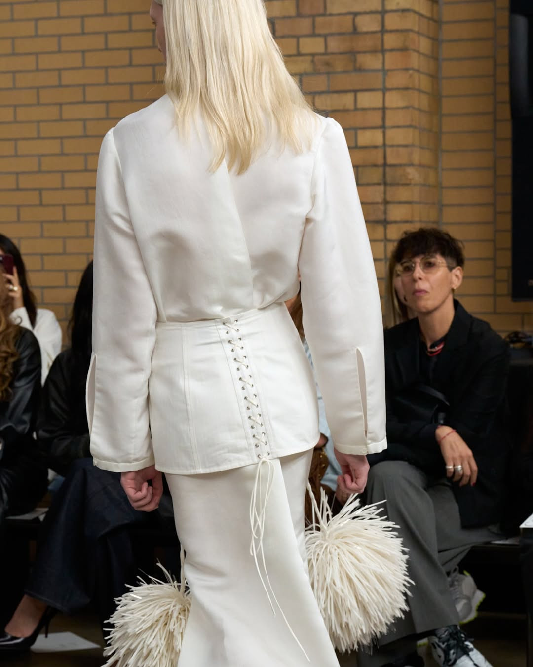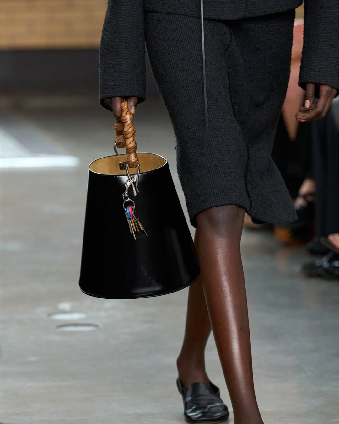 Это был показ-наблюдение, тихая хроника жизни в мегаполисе. «Бренд принадлежит людям больше, чем нам самим», — сказала Леони, и в этой фразе прозвучал манифест. Коллекция исследовала ту свободу, которая не требует доказательств — в смятой кожаной комбинации, в слегка странном костюме, в праве быть несовершенной и при этом красивой.