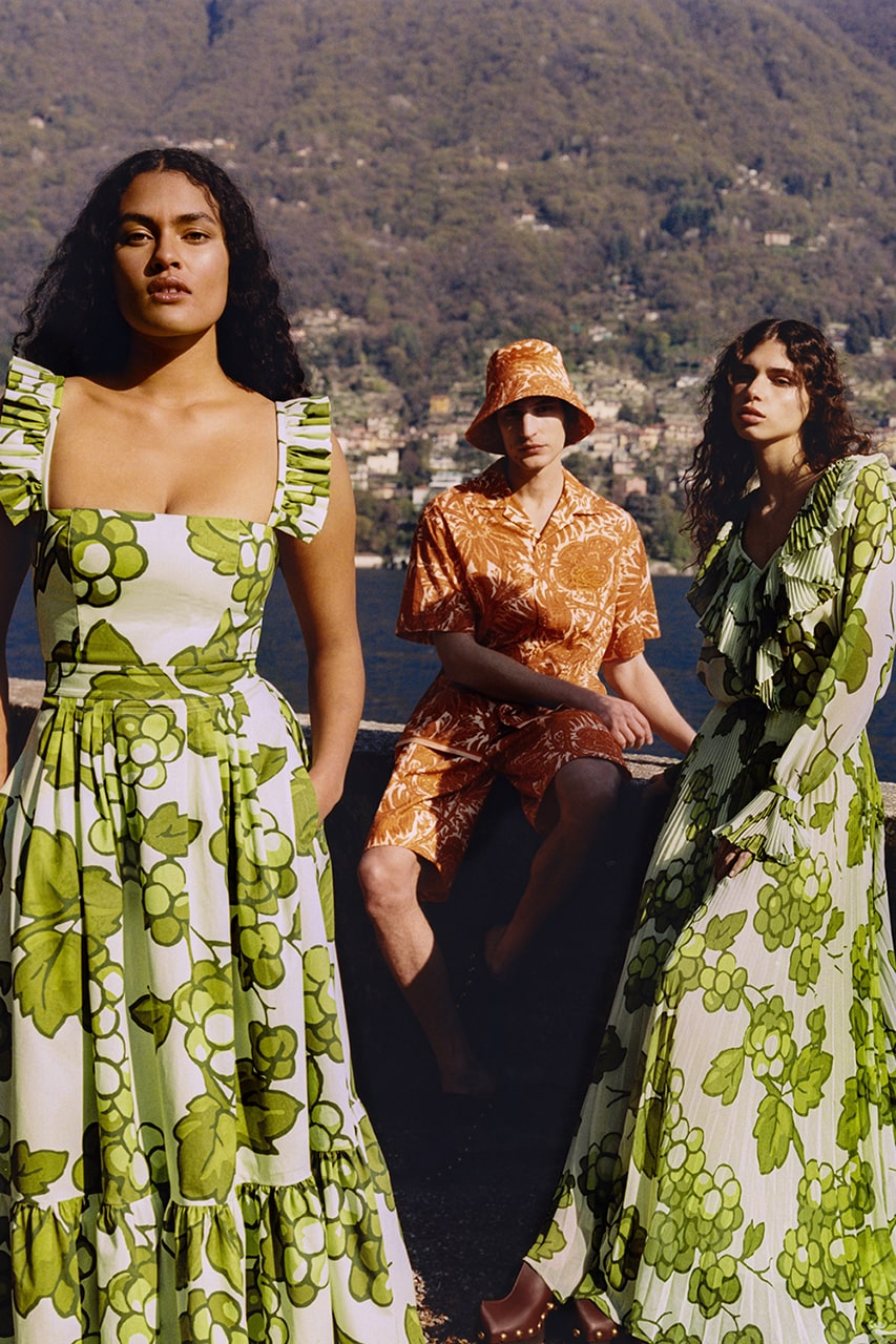 Яркая цветовая палитра и игривые принты — беспроигрышное сочетание на лето. Салатовый, апельсиновый и глубокий синий — при создании капсулы дизайнер вдохновлялся природной палитрой, а вместо фирменного принта «огурцов» бренда он решил обратиться к винограду и папоротнику.
