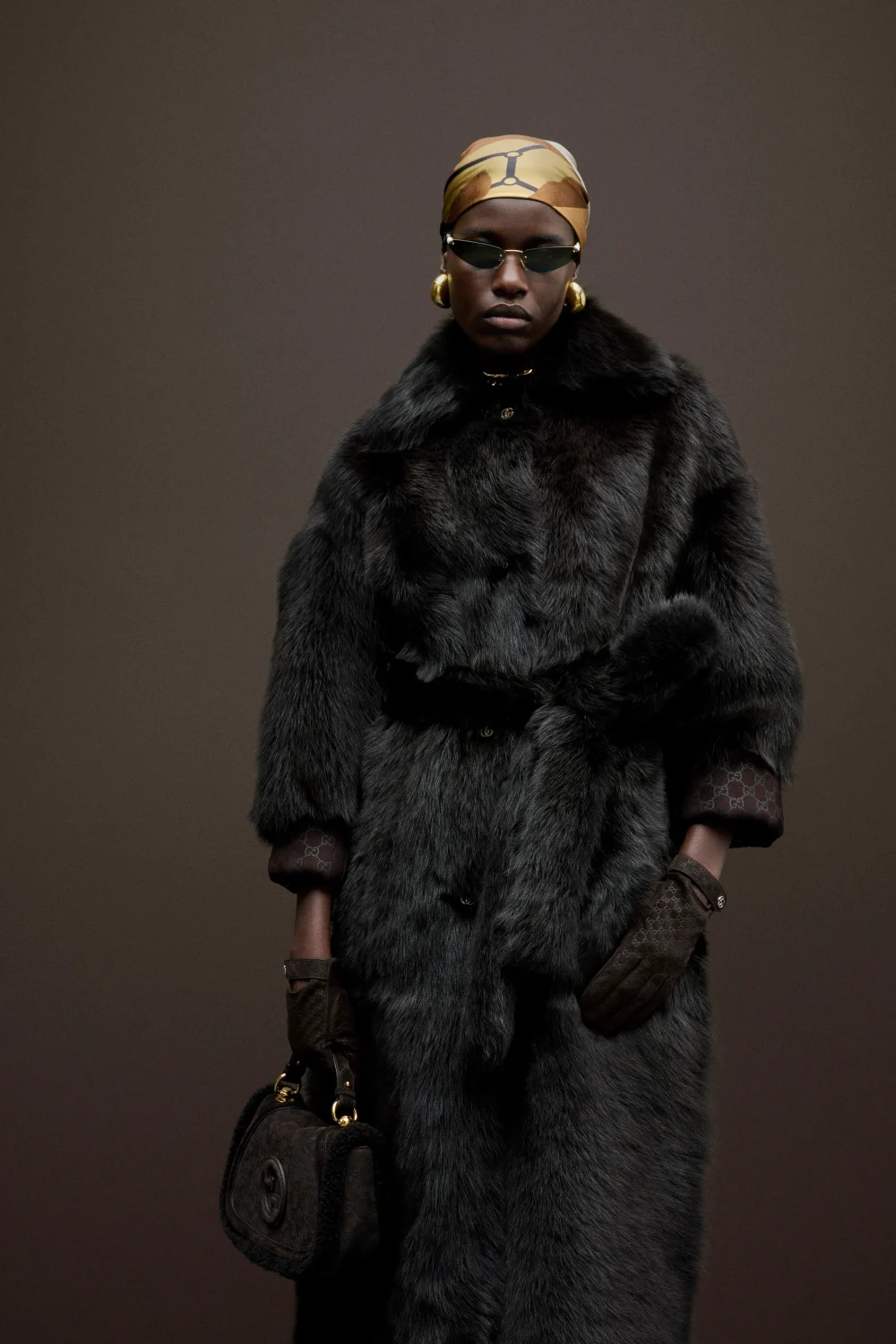 Ключевыми аксессуарами коллекции стали обновленные версии культовых сумок Gucci — Jackie 1961 и Blondie. Эти классические модели в новом исполнении приобрели современное звучание благодаря более ярким цветовым акцентам и уникальным текстурам. Еще одной интересной деталью стали платки, завязанные на голове в духе 70-х.